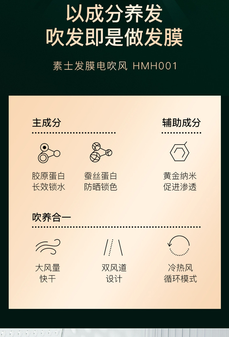 【吹风即做发膜】素士发膜电吹风机负离子胶原蛋白护发养发型家用大功率吹风筒小米生态链
