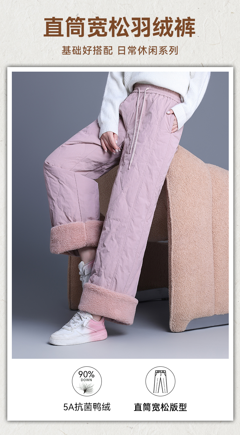 90%鸭绒填充 冬季加厚羽绒裤女 休闲百搭滑雪裤长裤 罗蒙