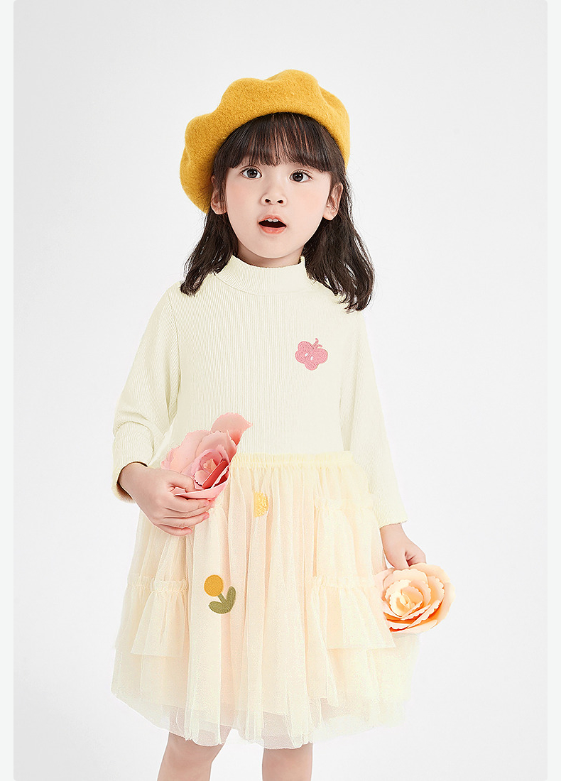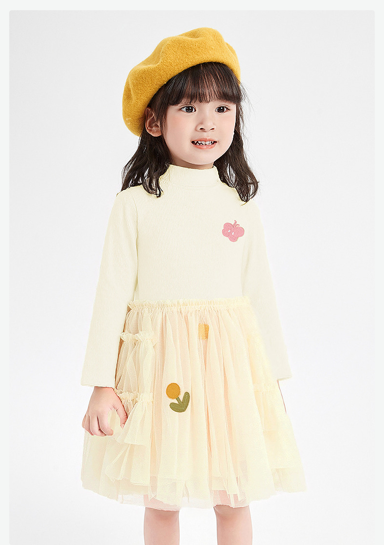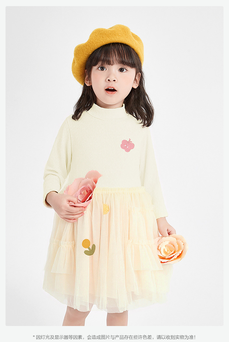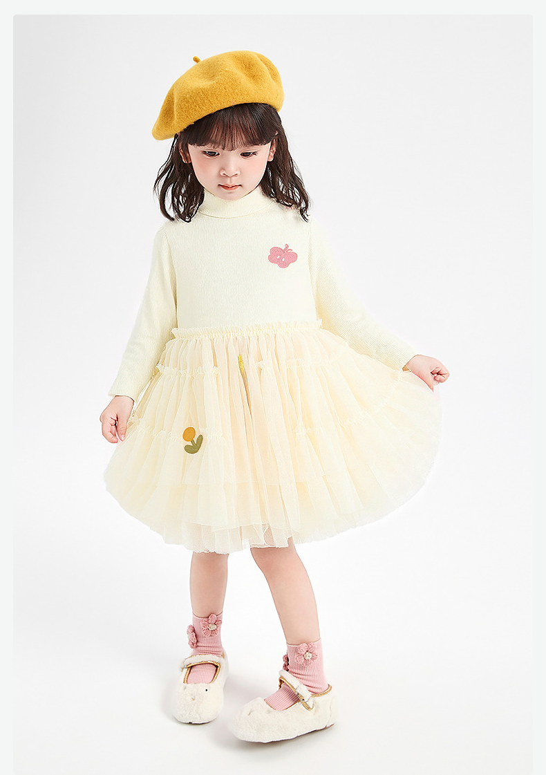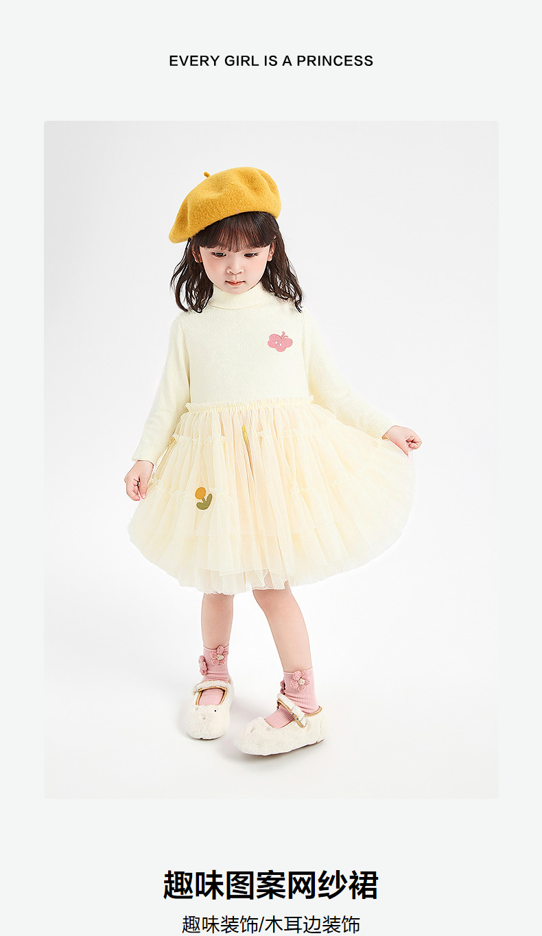 笛莎Deesha 童装女童连衣裙2025冬新款女童趣味图案网纱裙