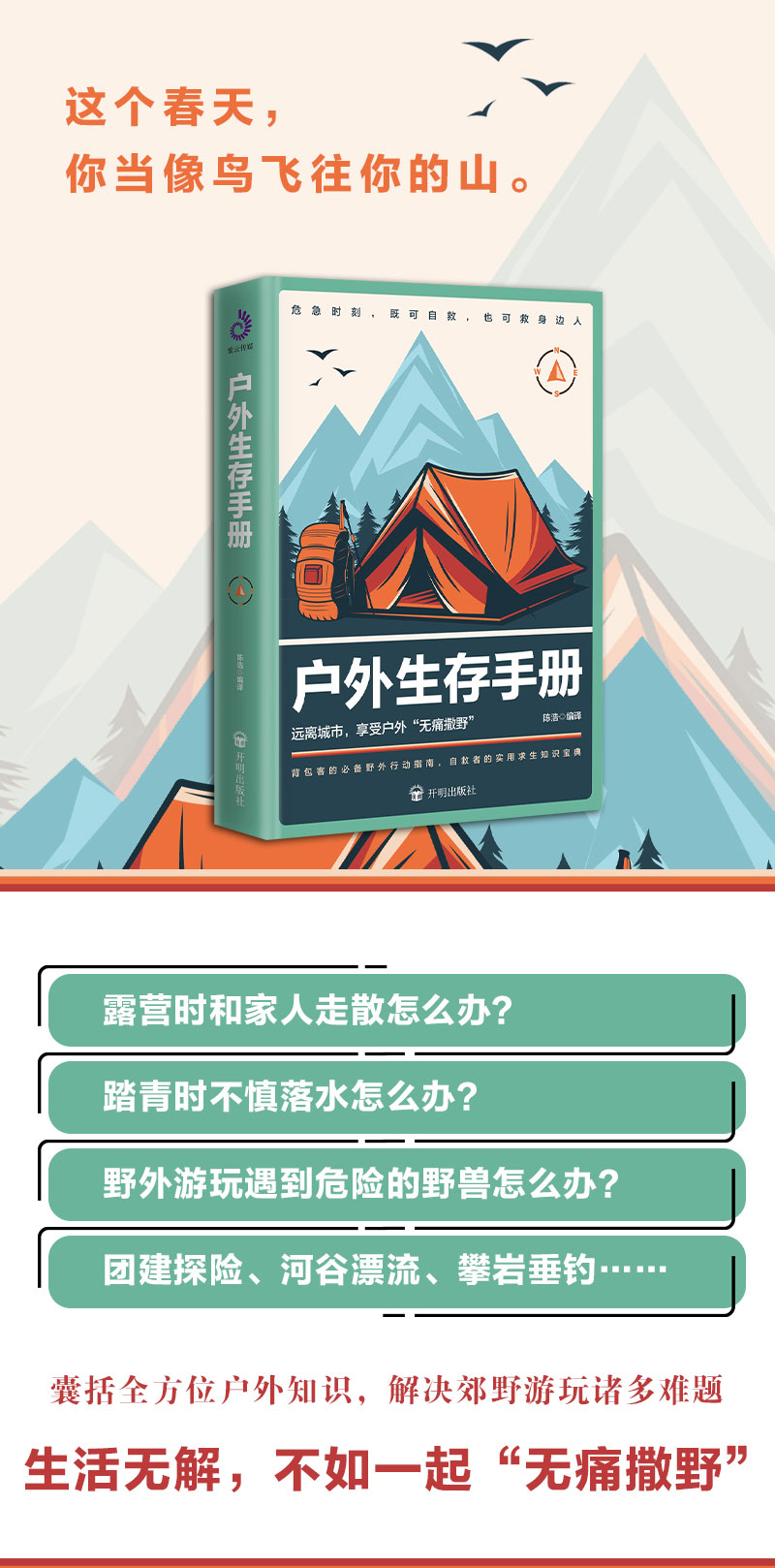 专为普通人定制的户外生存手册,解决旅行、探险、野营、徒步、登山、野外生存中的众多难题!