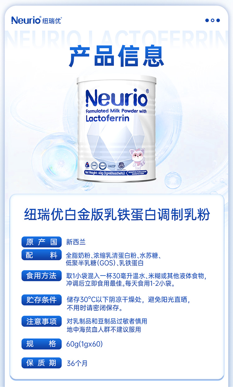 纽瑞优白金版乳铁蛋白调制乳粉60g