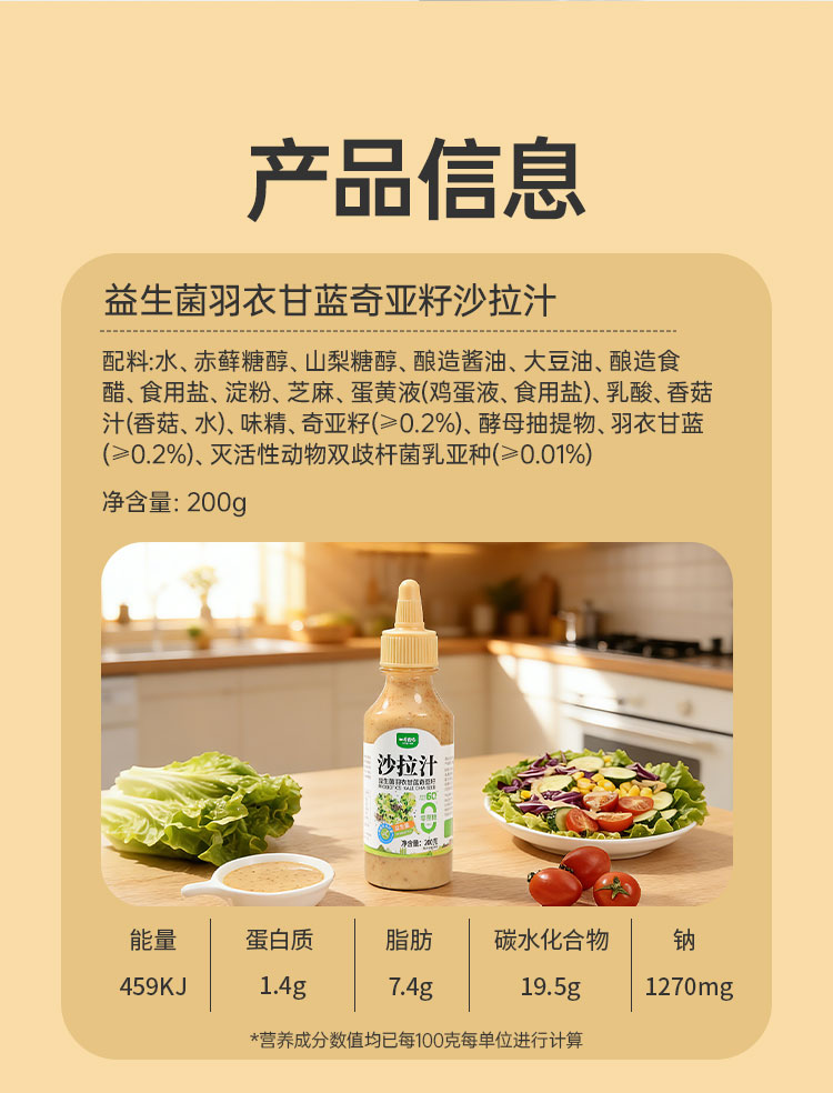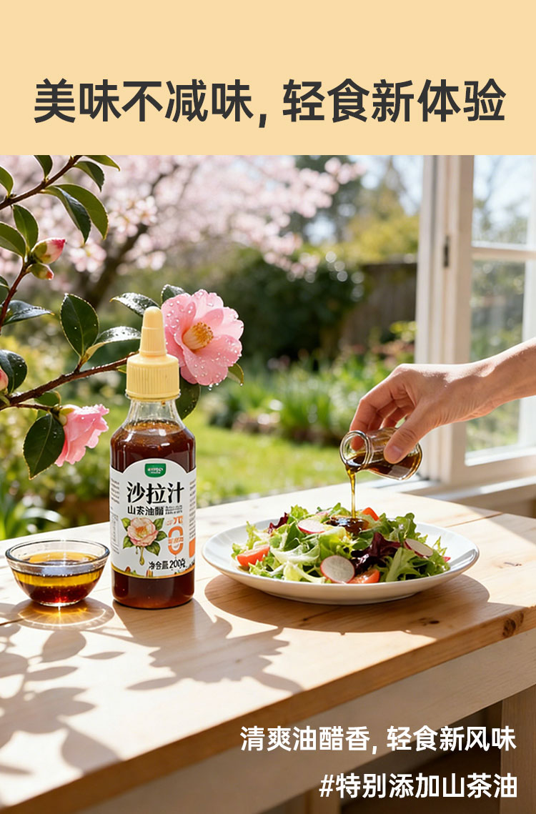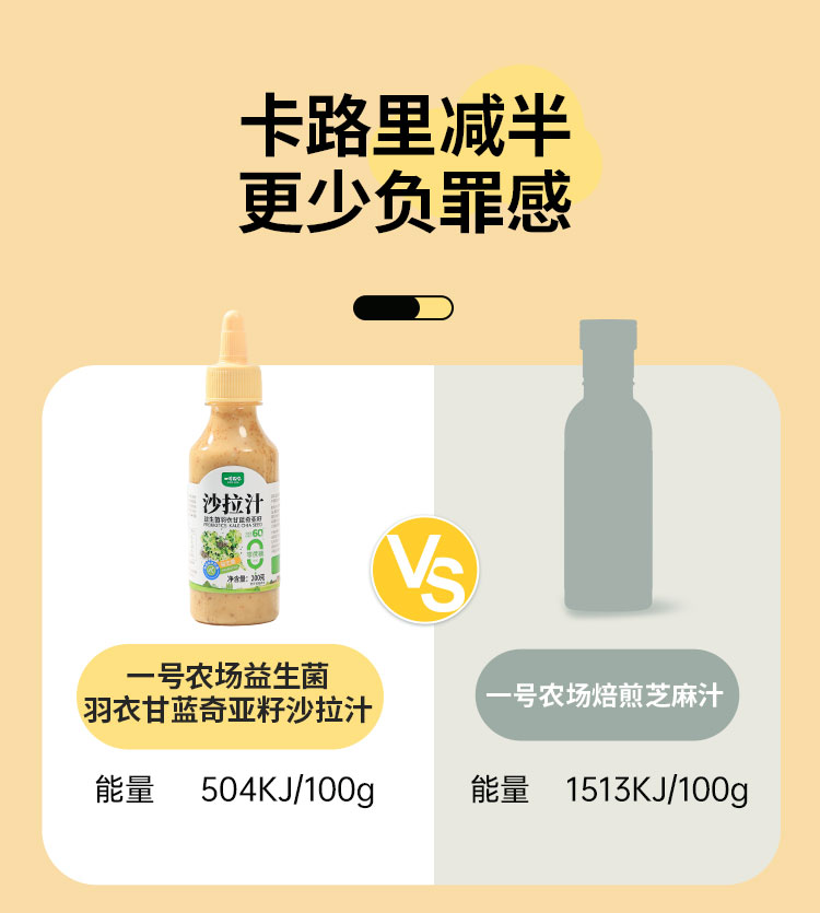 一号农场0蔗糖益生菌山茶油沙拉汁蔬菜水果专用羽衣甘蓝奇亚籽焙煎芝麻味