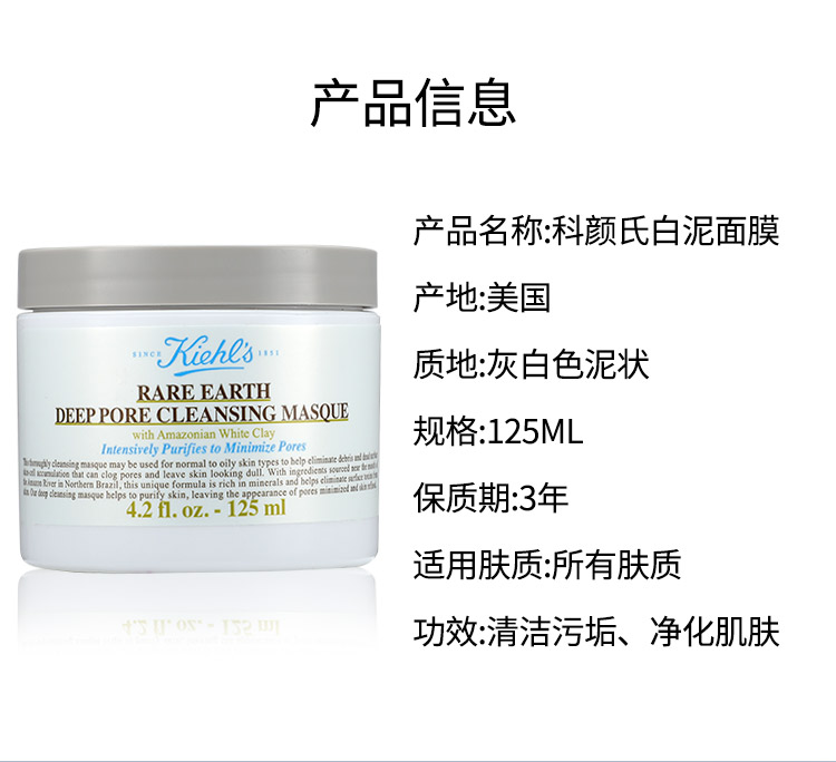 【YZ】科颜氏白泥面膜收缩毛孔去黑头粉刺净肤泥膜125ml 原价:350