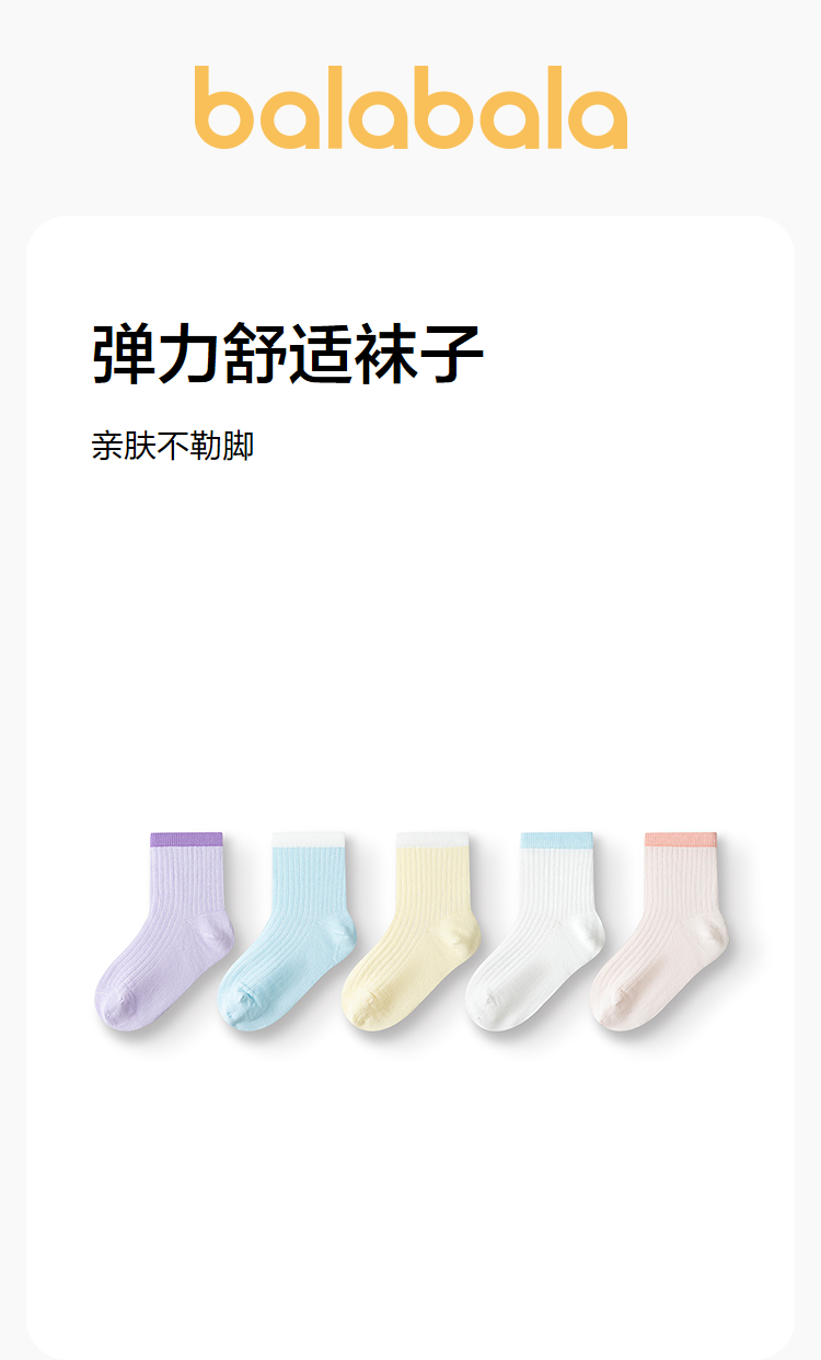 巴拉巴拉儿童袜子夏季网眼儿童运动风袜透气男女童小童大童五双装