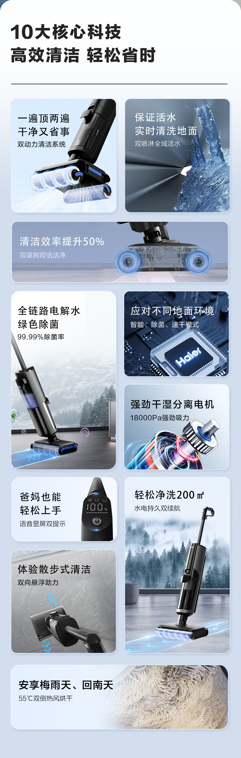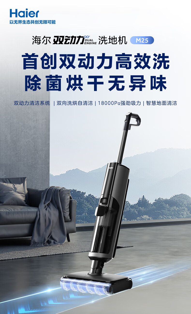 【双动力】海尔(Haier)无线智能洗地机M25家用扫地机吸拖一体拖地机电动拖把手持全自动