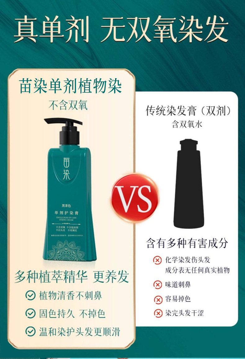 苗染新升级二代单剂染发剂批发植物健康染发膏自己染头发新品代发