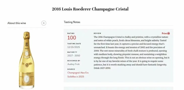 这次为大家带来的最新配额2016年的路易王妃Cristal,James Suckling给出了香槟届的罕见100分满分