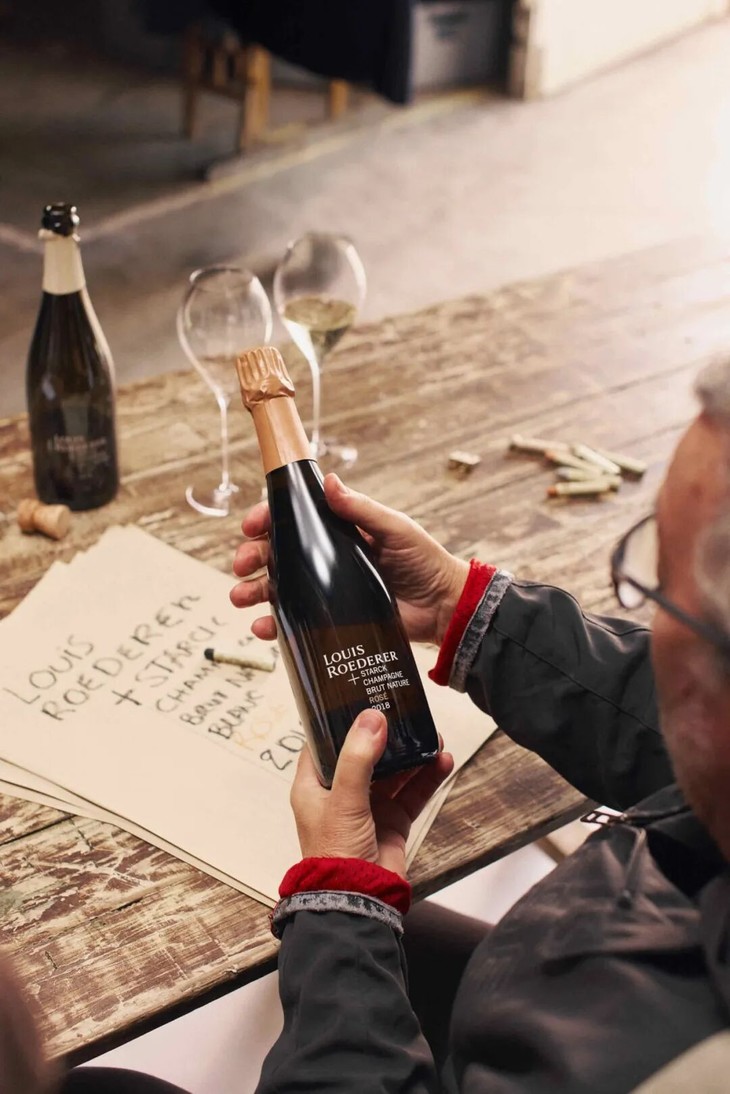通常的名人联名只是设计酒标,但这款酒不同。当路易王妃庄主 Frédéric Rouzaud 邀请设计鬼才 Philippe Starck 合作时,Starck 最初是拒绝的。他说:“我只喝‘零补糖’(Zero Dosage)的香槟,如果你们不能做一款我爱喝的酒,我就不参与。”