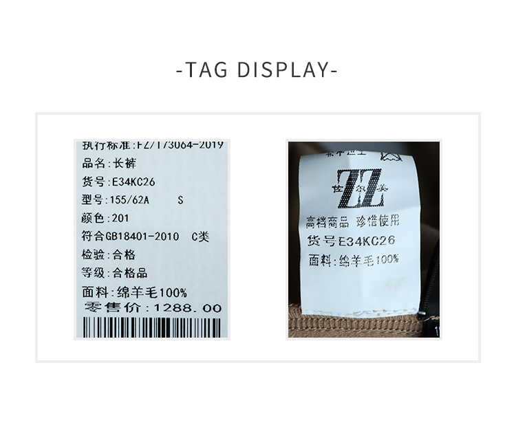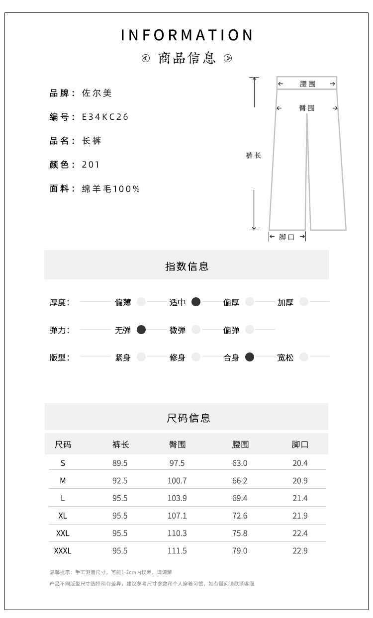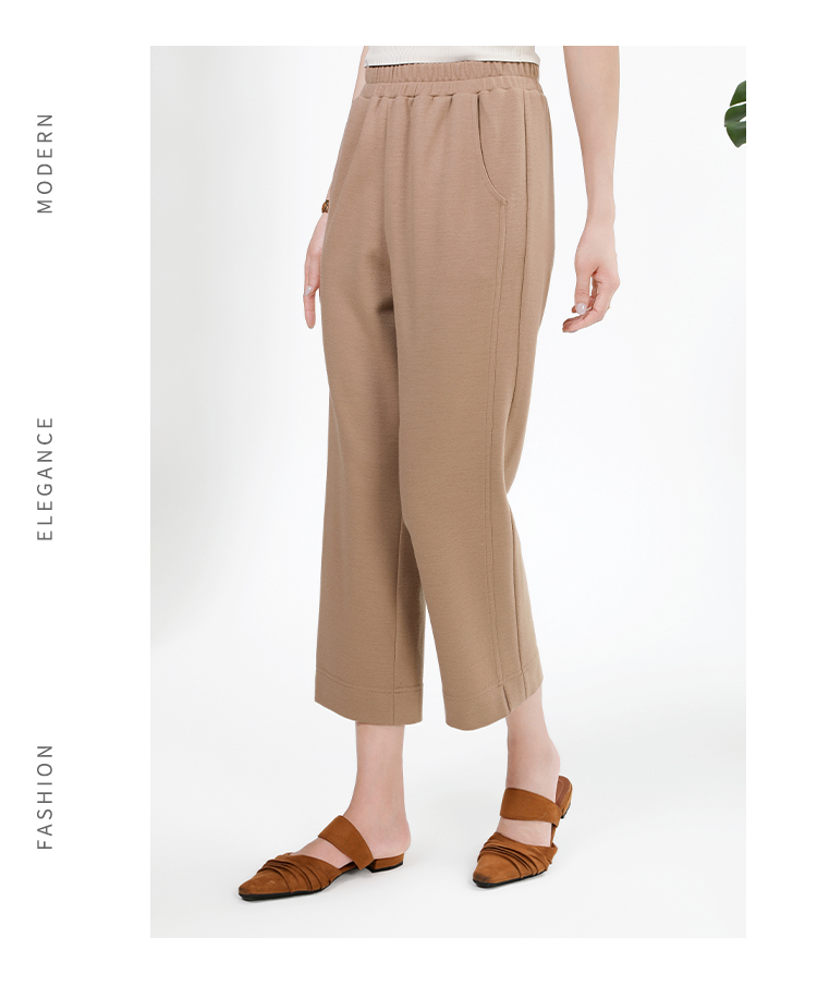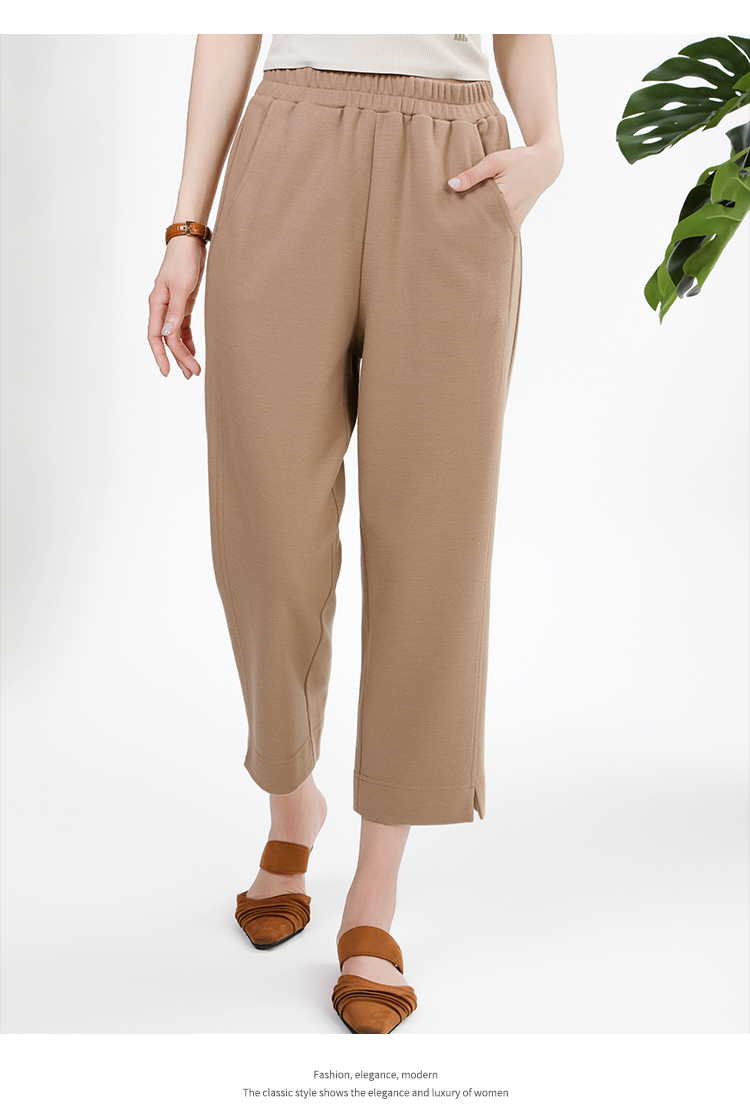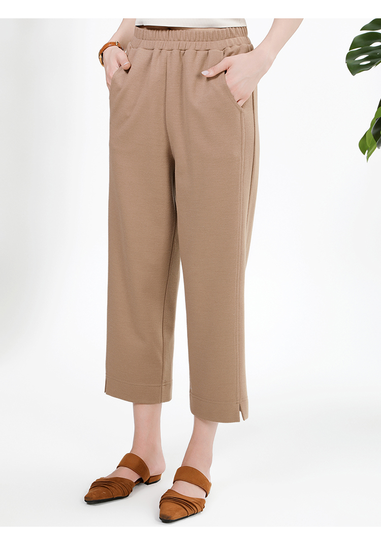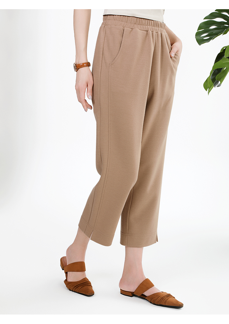 佐尔美简约百搭松紧腰100%绵羊毛长裤女E34KC26