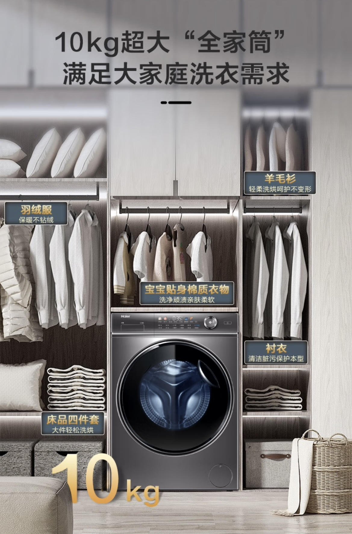 海尔(Haier)洗烘套装 XQG100-BSNEG87AU1+GA100-BQT87AU1