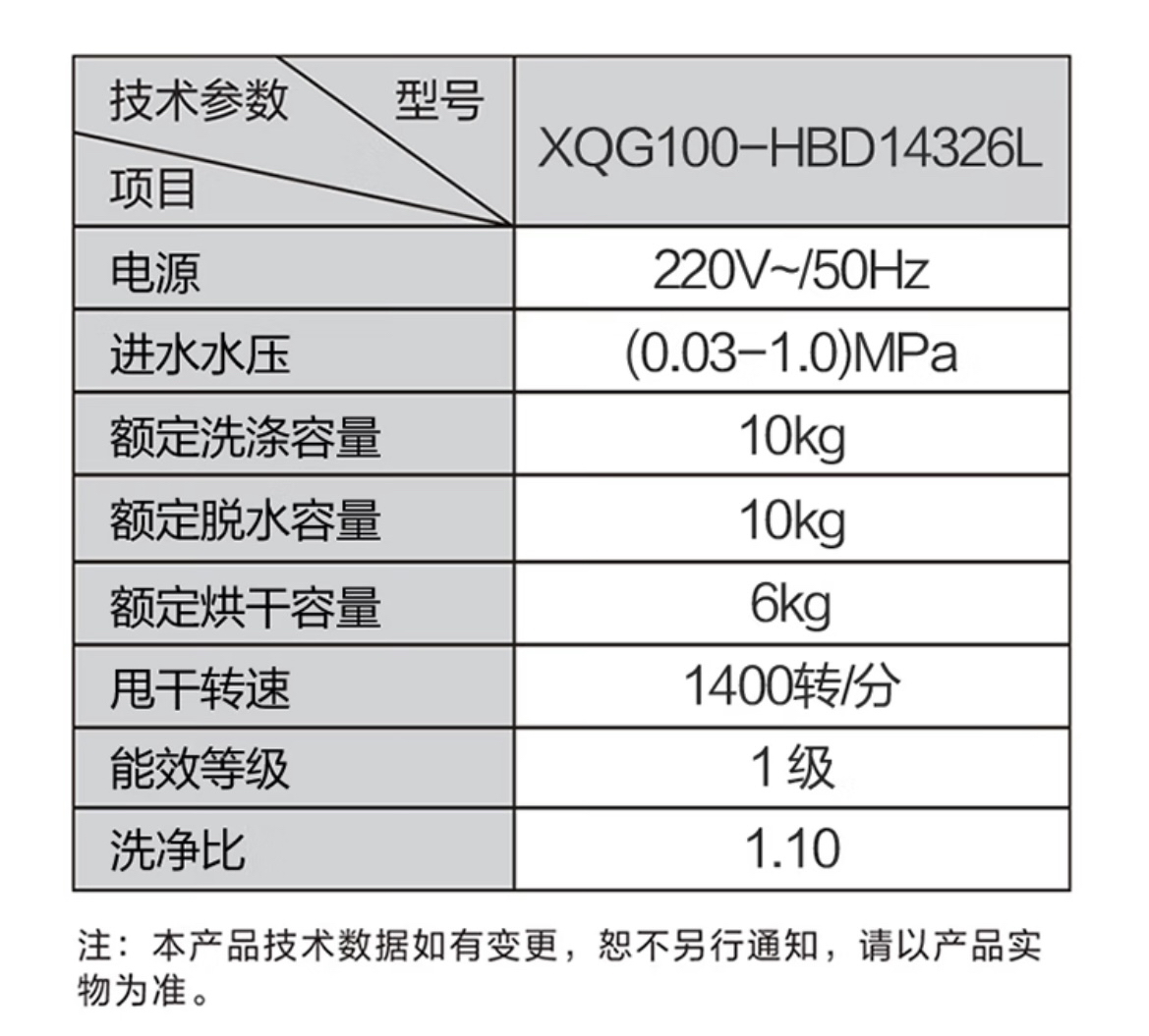 海尔(Haier)洗衣机 XQG100-HBD14326L