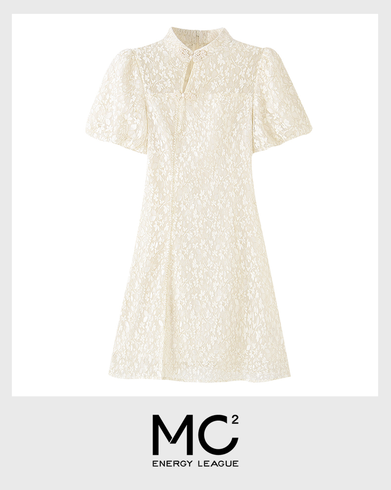 女装立领短袖旗袍式蕾丝连衣裙Q3222366