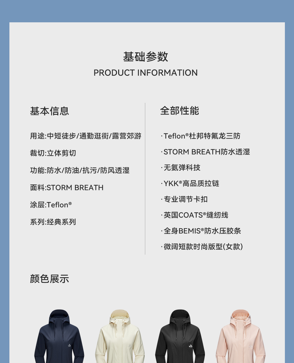 【归野】伯希和户外夏季单层冲锋衣女2025新款Teflon三防登山服男