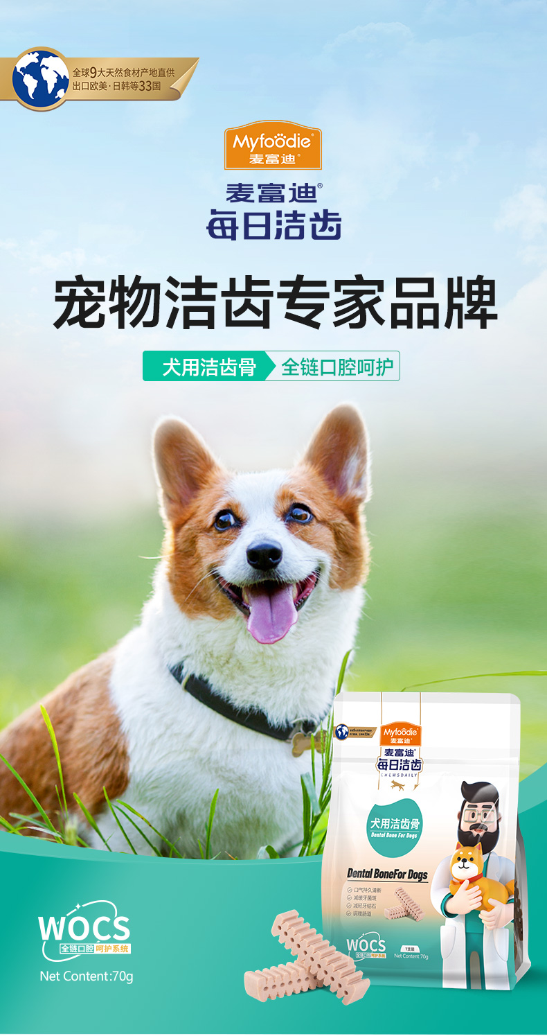 麦富迪旗舰店狗零食磨牙棒每日洁齿犬用犬用洁齿骨清新口气耐咬70