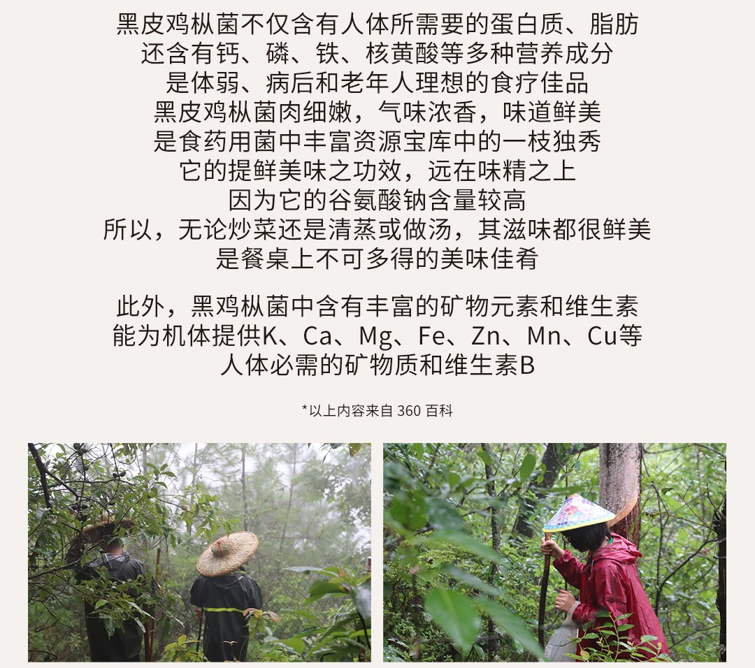【配料】黑皮鸡枞、菜籽油、干辣椒、草果、藏青盐