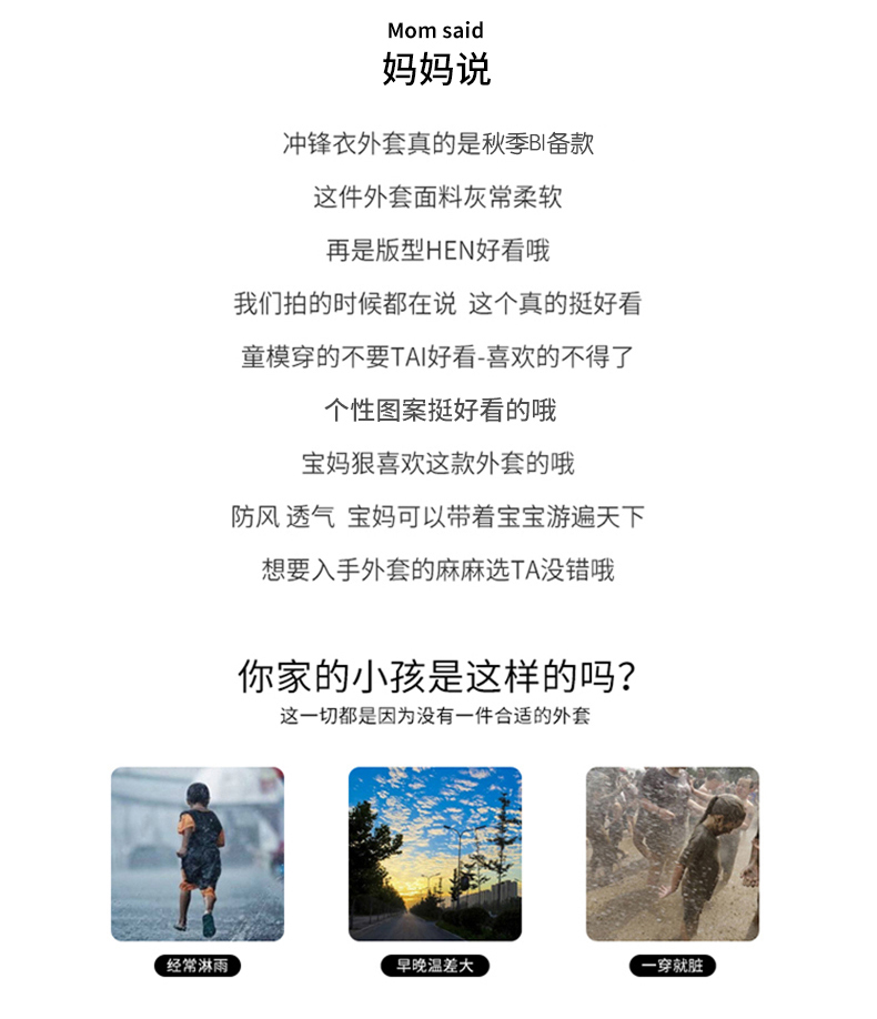【反季清仓】儿童冲锋衣男女童薄款外套冲锋衣 防风防水外套秋季中大童装100%