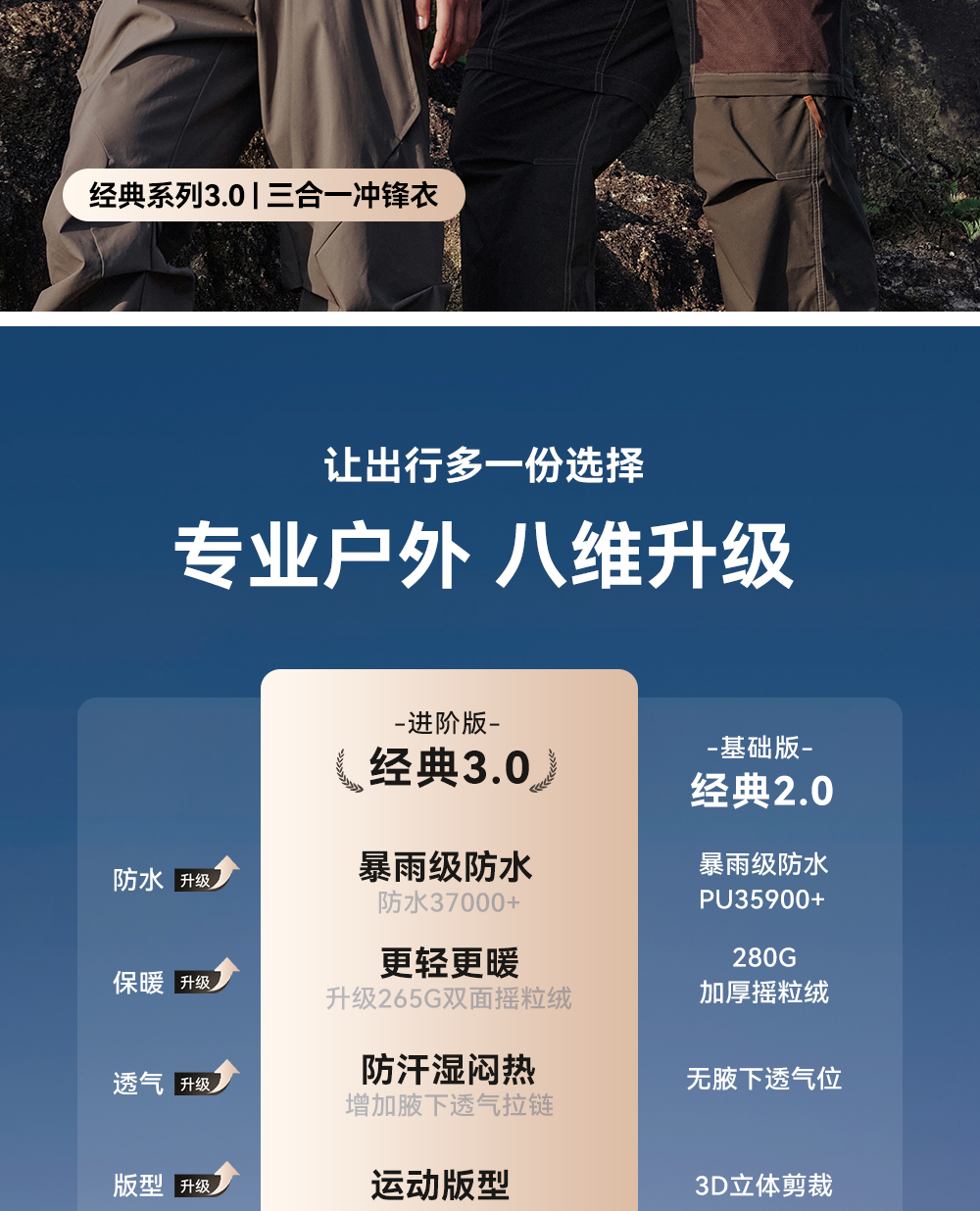 【经典3.0】伯希和户外冲锋衣男新款三合一防风防水登山服外套女