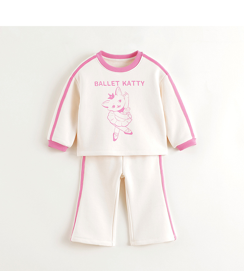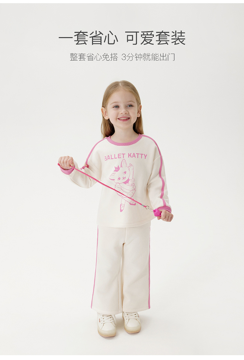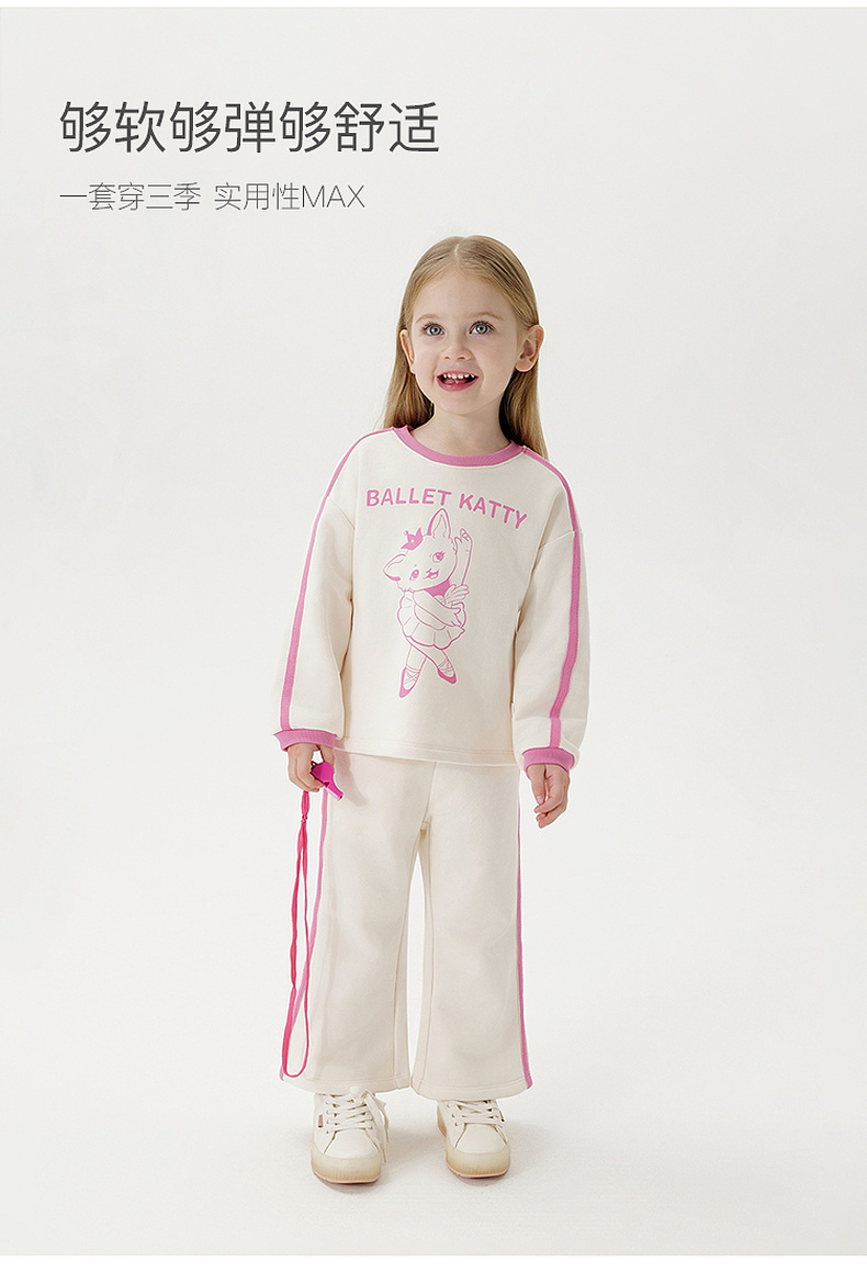马克珍妮女童可爱撞色喇叭裤卫衣套装2025年春装新款250223