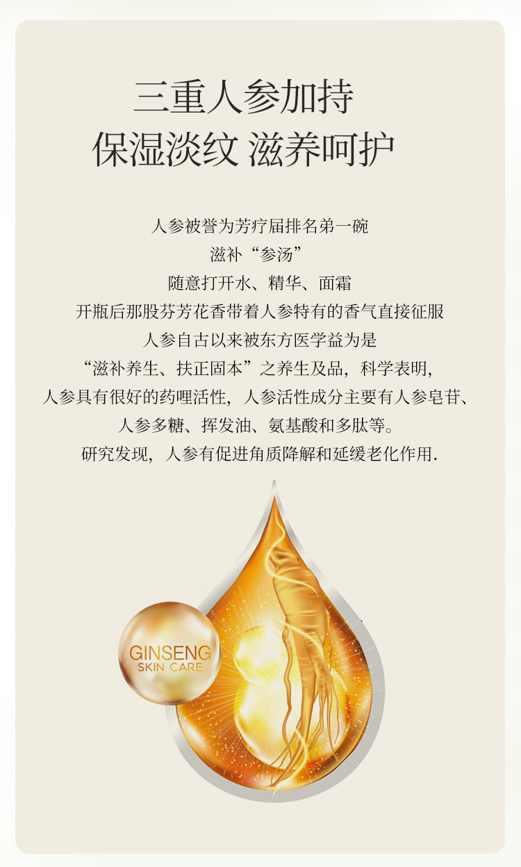 三重人参精油虫草原浆水淡化细纹抗皱VC提亮肤色125ml