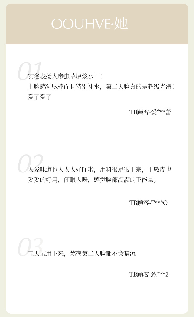 - OOUHVE无添加护肤品,以内养外精准护肤 译为“更像自己”通过肌肤是有生命,学会倾听肌肤声音的探讨 赋予产品精神意义与力量,通过优选原料品质温和精纯有效的护肤品,让每一位女性在使用后更加独立坚强。