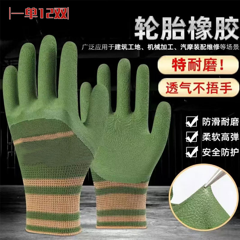 12双防滑耐磨劳保轮胎橡胶手套干活柔软透气防护舒适高弹贴合