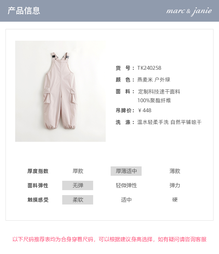 【吸湿速干】马克珍妮女童山系户外工装背带裤春装裤子新款240258