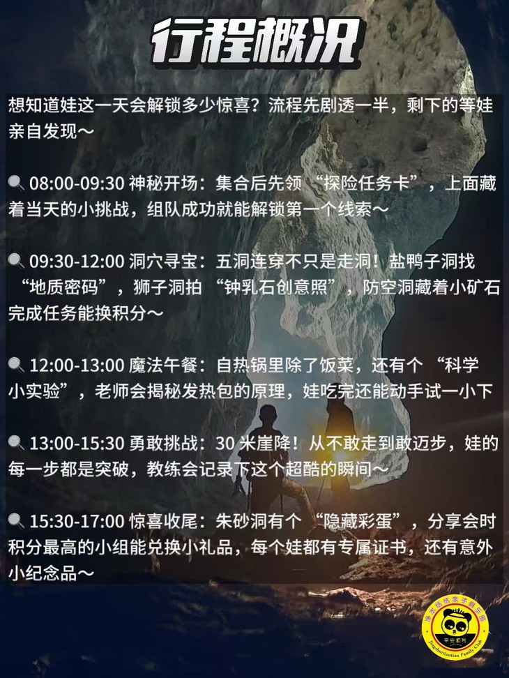✅ 安全保障:全程有专业教练带队,师生比例1:6,洞道内提前排查过所有安全隐患,杜绝意外风险;