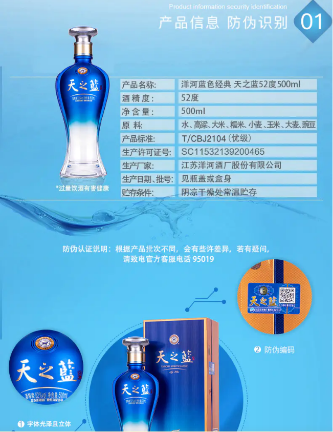 洋河天之蓝52度500ml 4瓶/箱 2箱起购 下单前请认真阅读详情页【20241118发货】