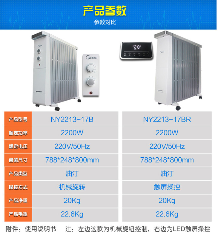 美的(Midea) (507805)油汀取暖器NY2213-17BR 倾倒断电 热风电暖器电暖风电暖炉省电13片2200瓦支持