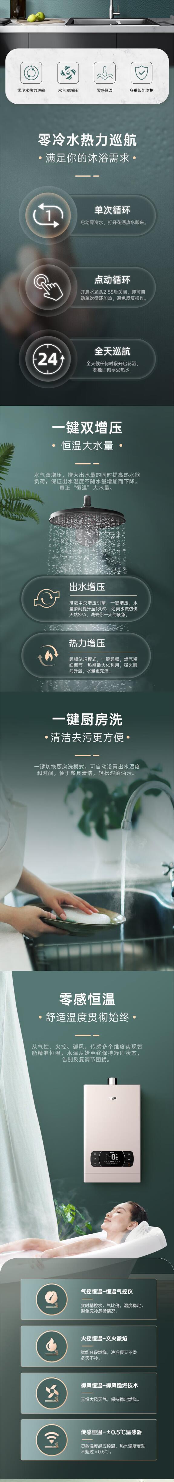万家乐(510343 )双增压零冷水零感恒温热水器洗澡厨房多重智能保护JSQ30-16ZH3