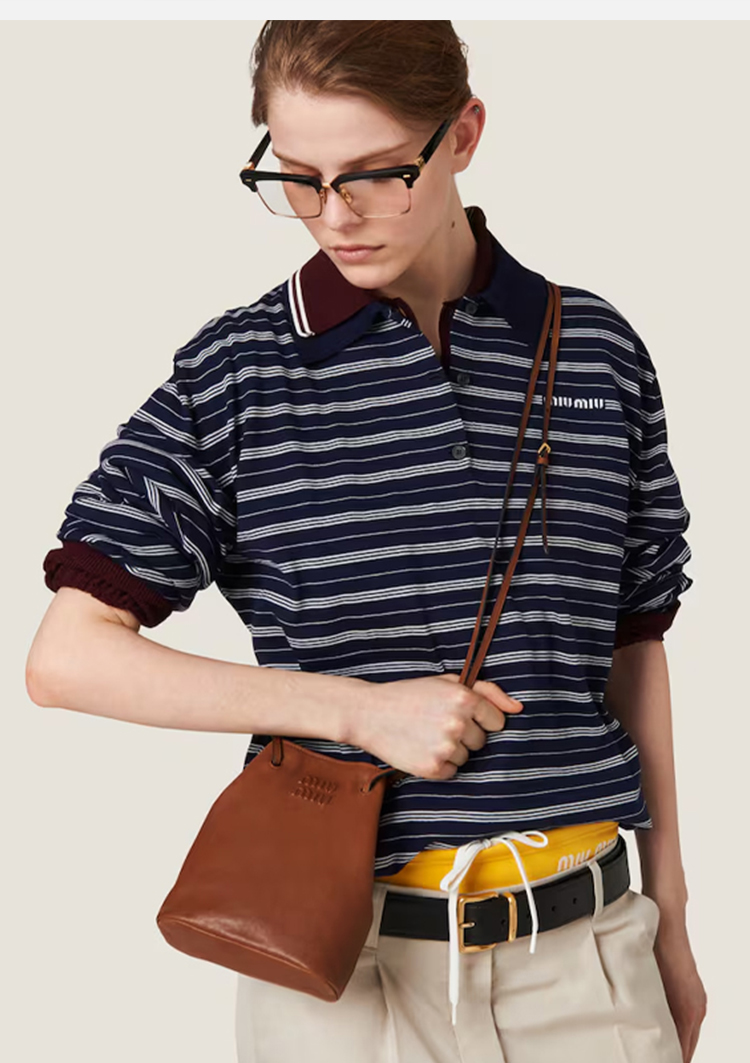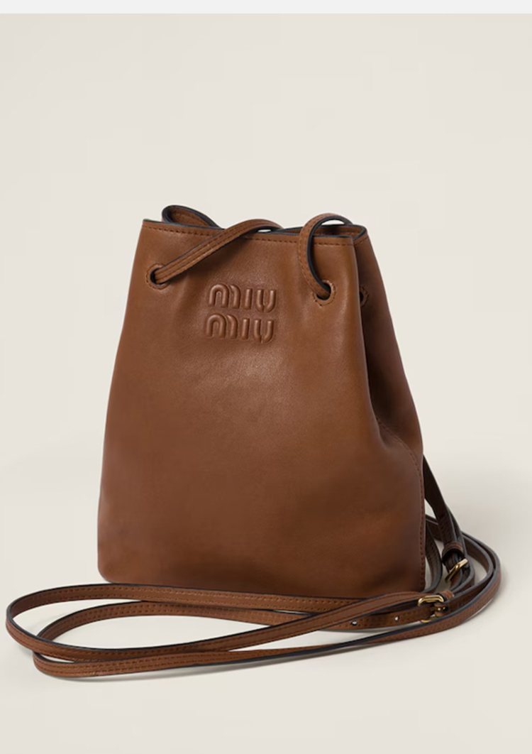 Miu Miu 女士压花字母徽标纳帕皮革迷你单肩包 棕色 5NF460 AEFX F0316