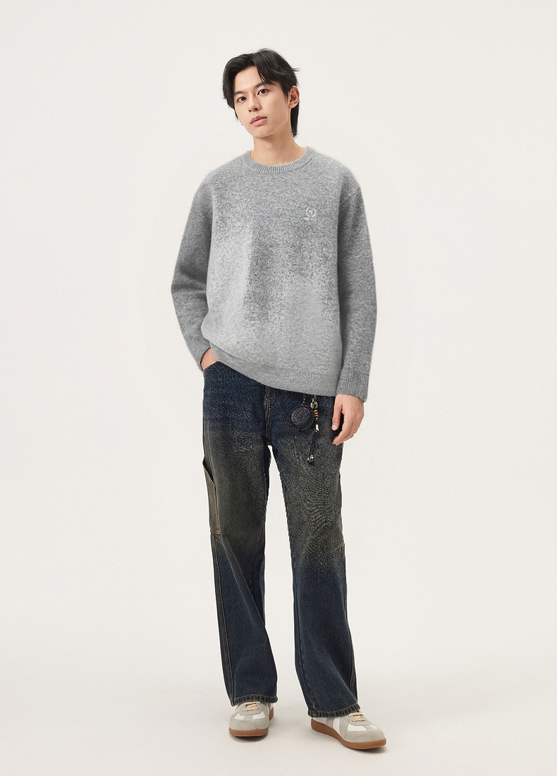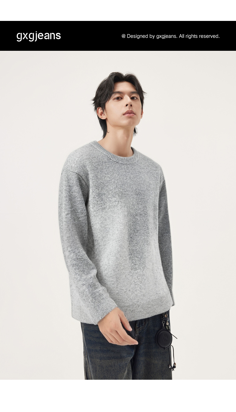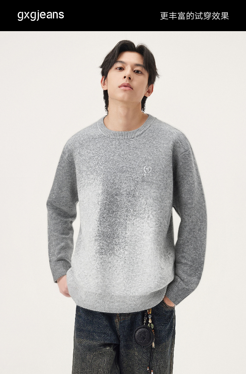 gxg.jeans男装 渐变花纱含羊毛休闲宽松圆领毛衣线衫 25年冬热卖