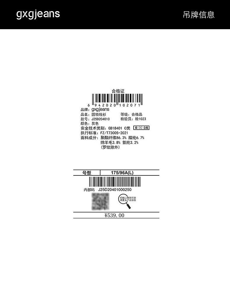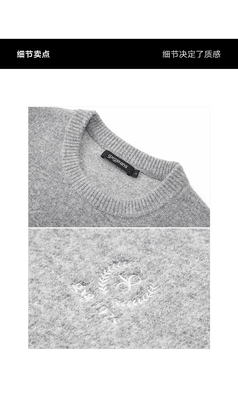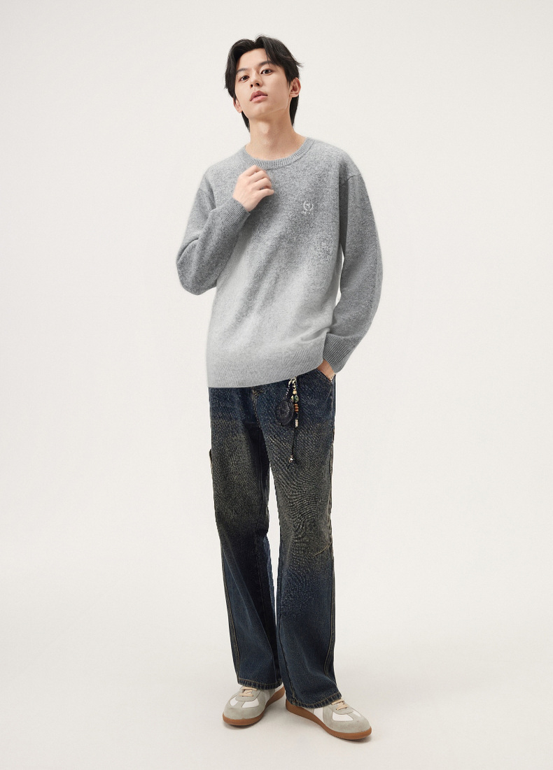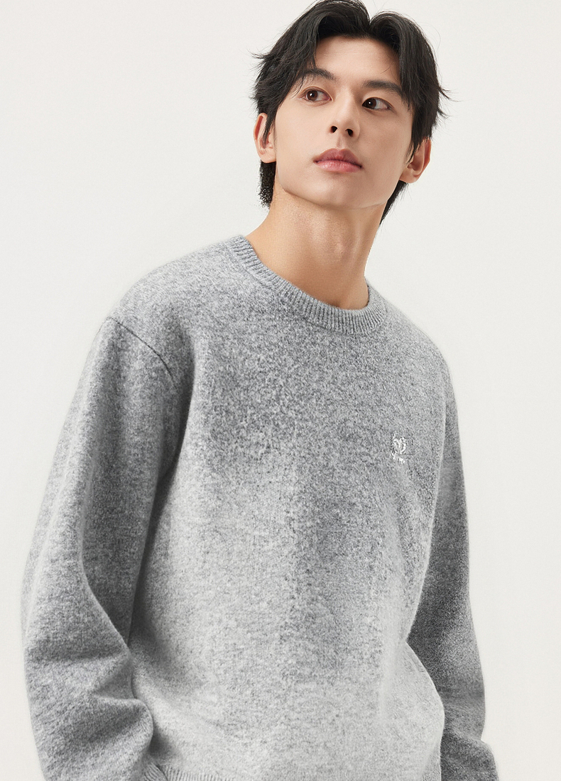 gxg.jeans男装 渐变花纱含羊毛休闲宽松圆领毛衣线衫 25年冬热卖