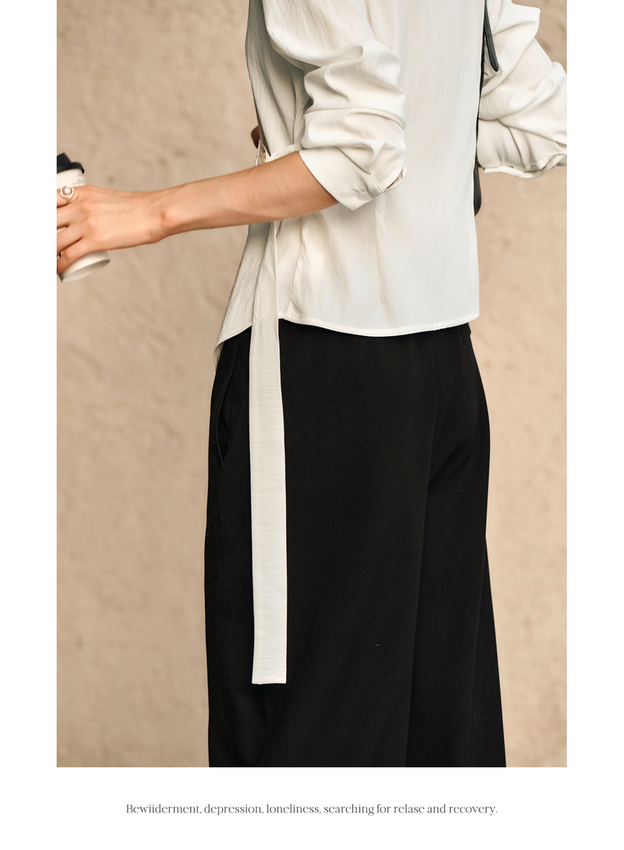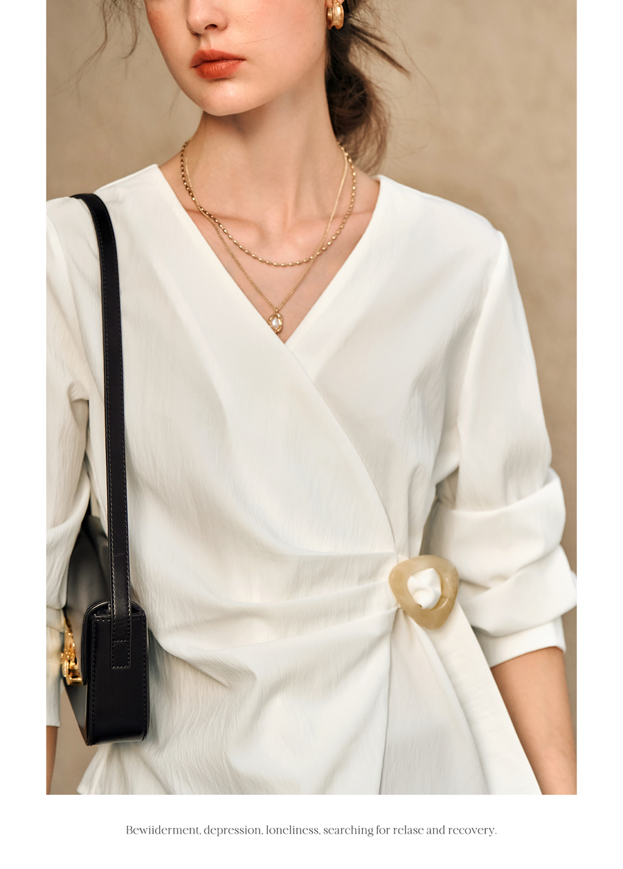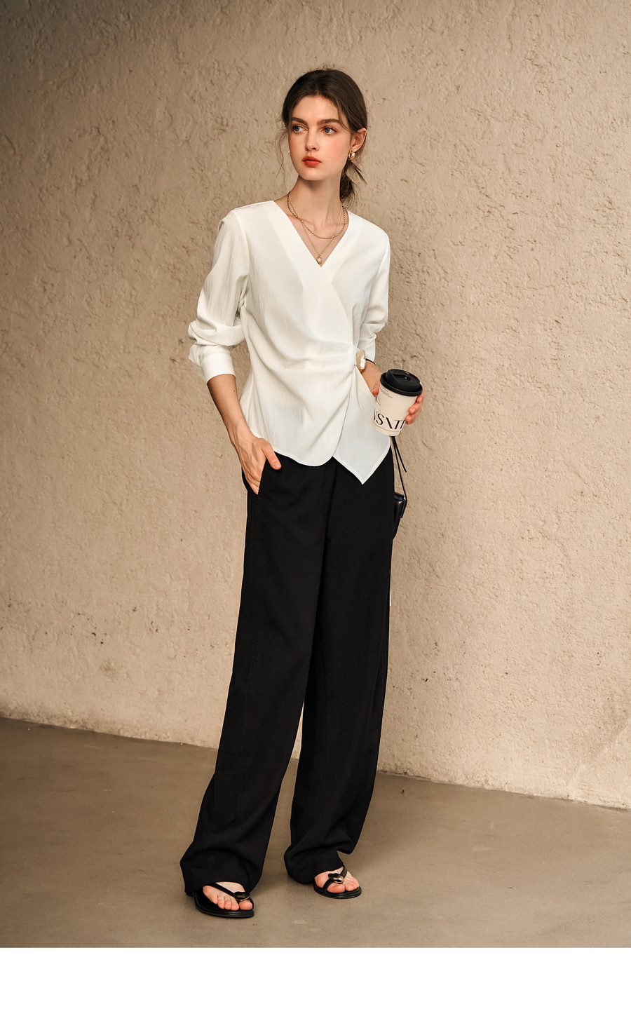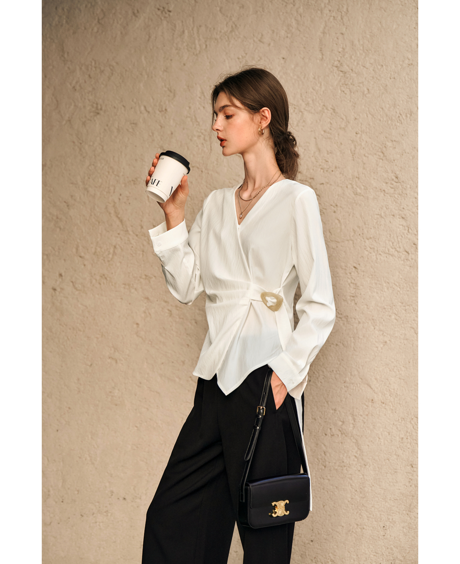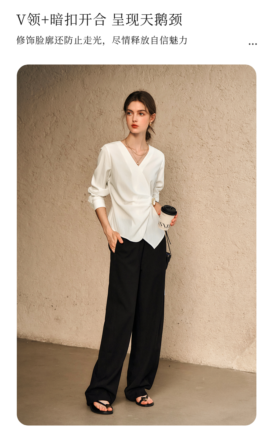 OLrain欧芮儿法式白色雪纺衫女冬季2024年新款通勤收腰抽褶衬衣