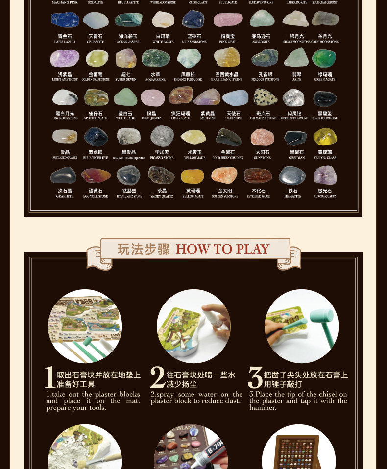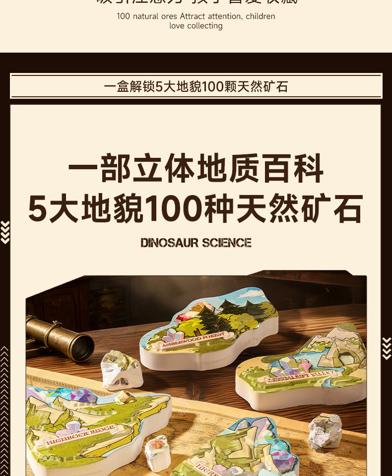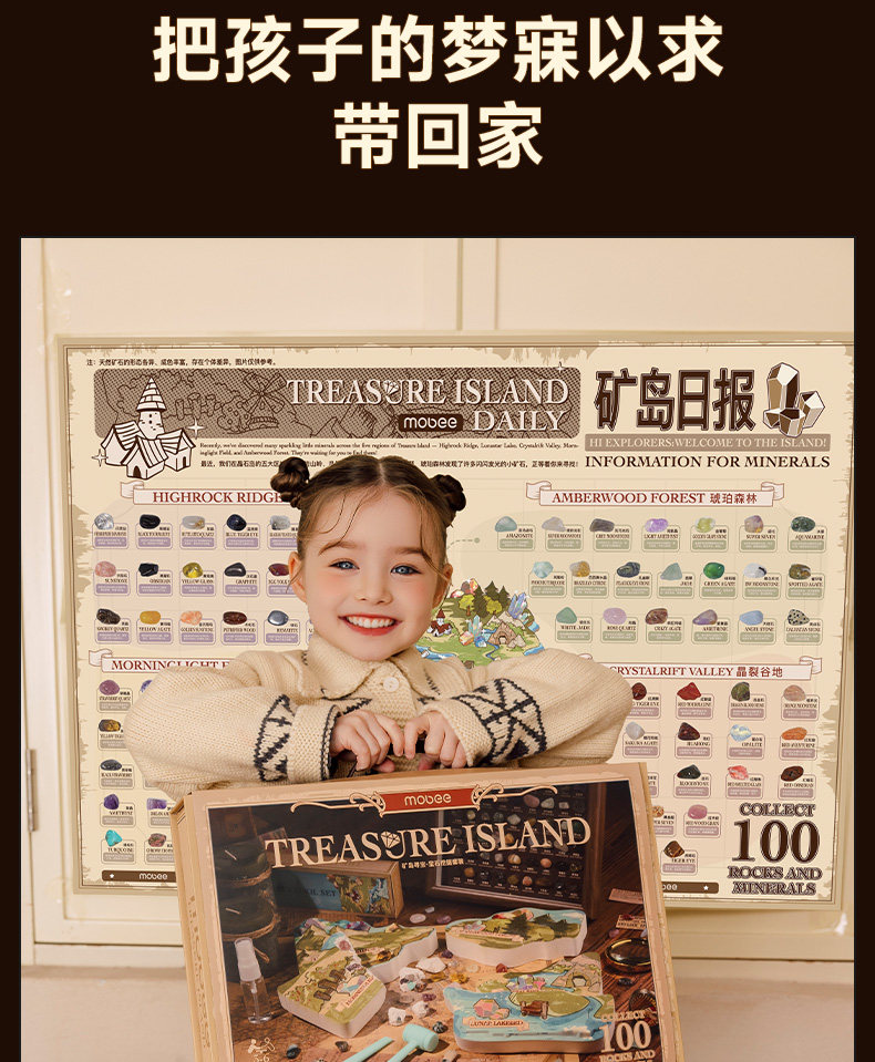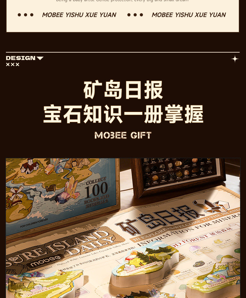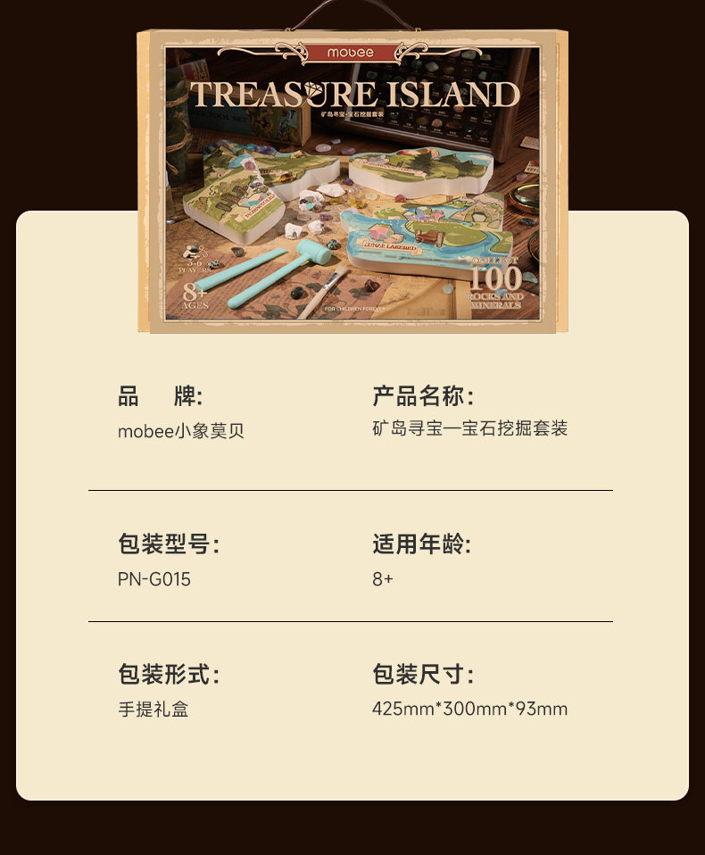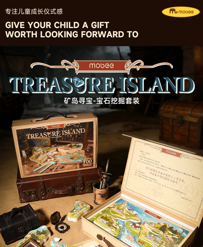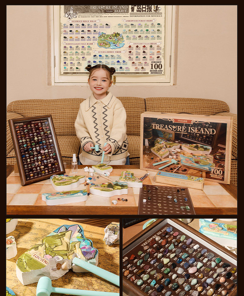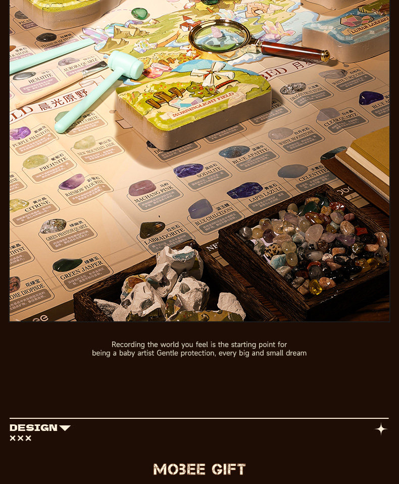 【给亲子做地貌科普体验 寻宝礼盒】mobee儿童考古挖矿挖掘 晶宝石男女孩宝藏石膏盲盒 手工diy玩具礼盒