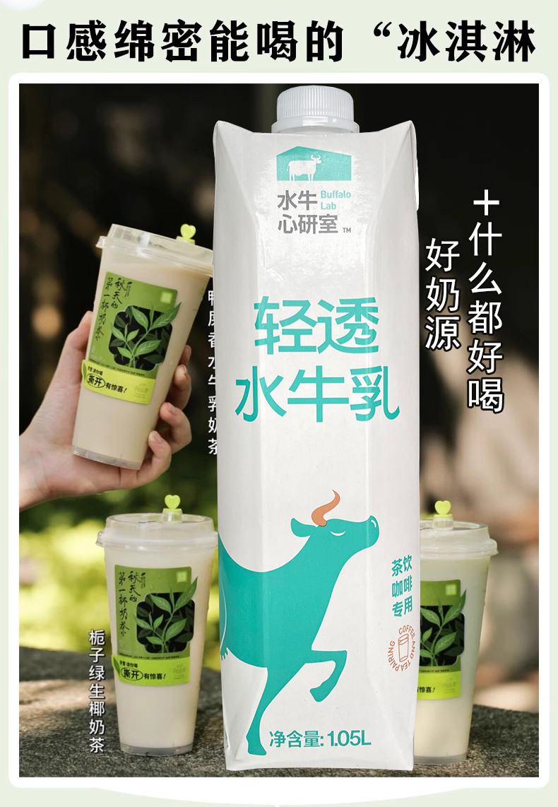 水牛心研室轻透水牛乳1.05L水牛奶广西水牛奶咖啡拿铁轻乳茶商用牛乳