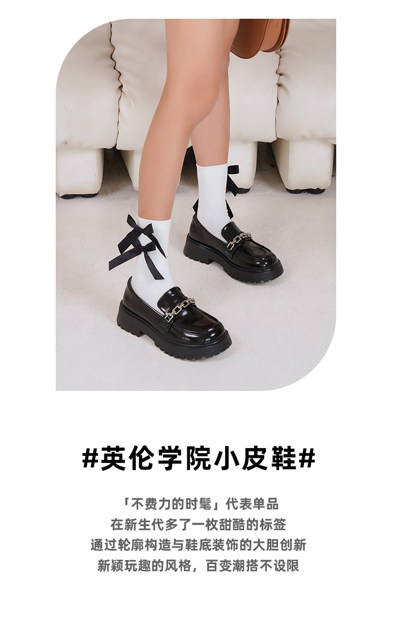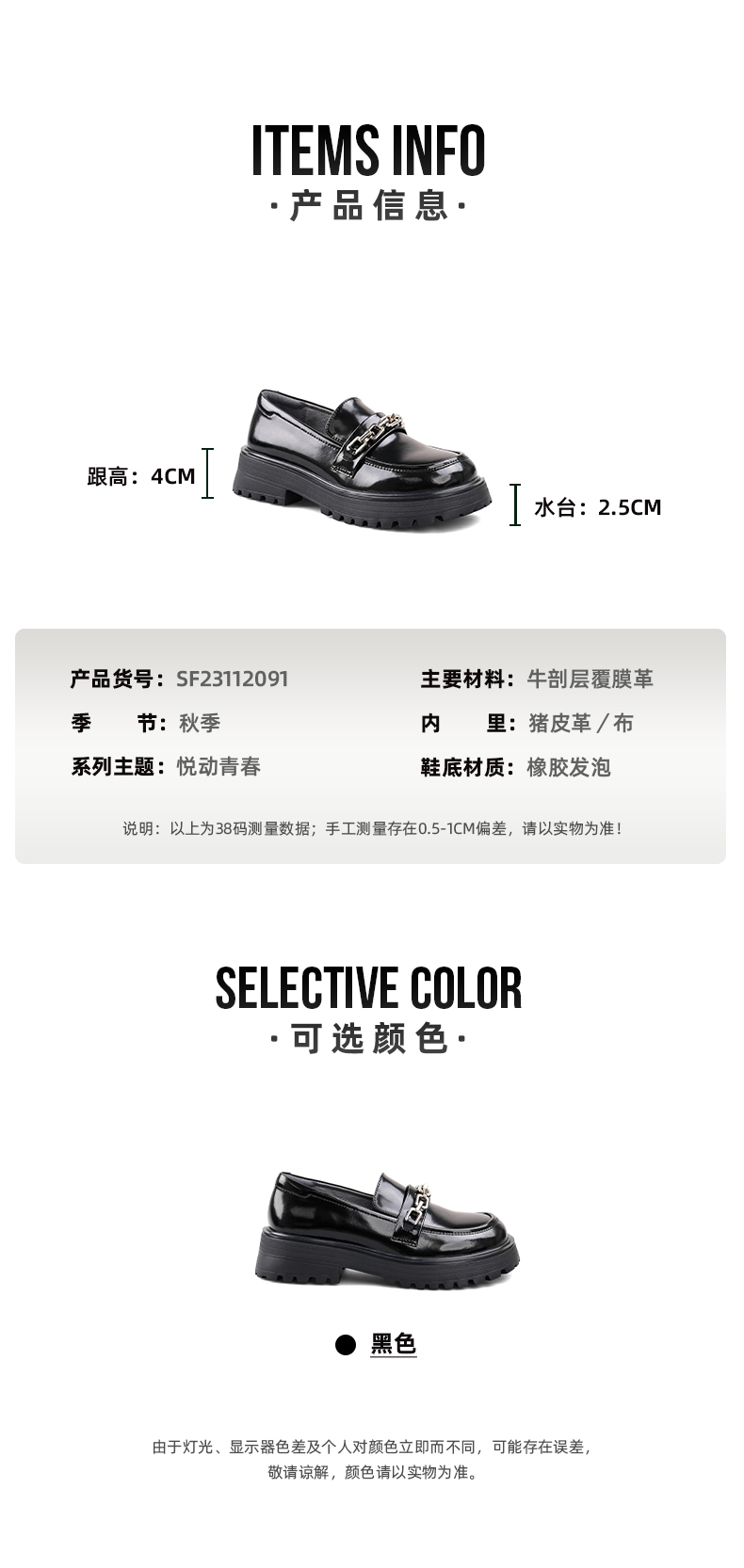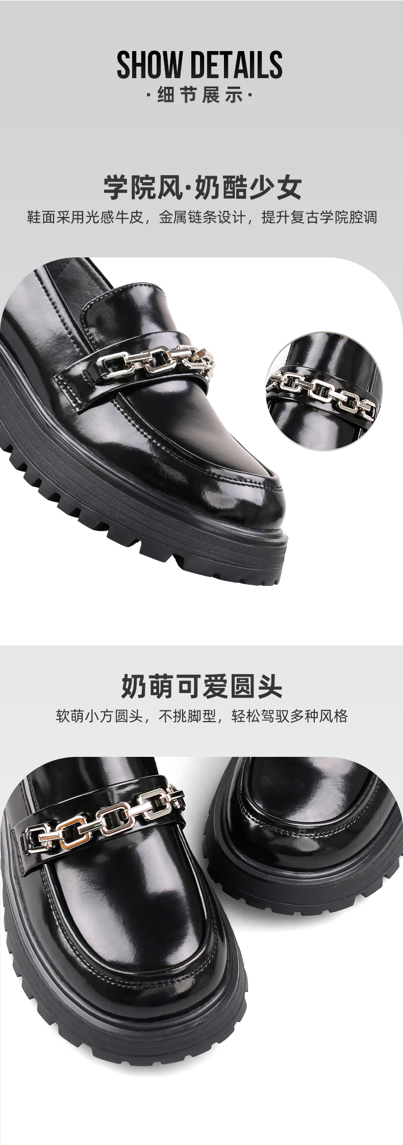Safiya/索菲娅 奶趣娃娃鞋头2022秋季新款甜酷学院风松糕厚底百搭增高小皮鞋 SF23112091
