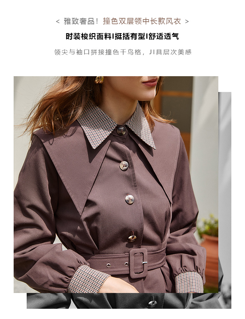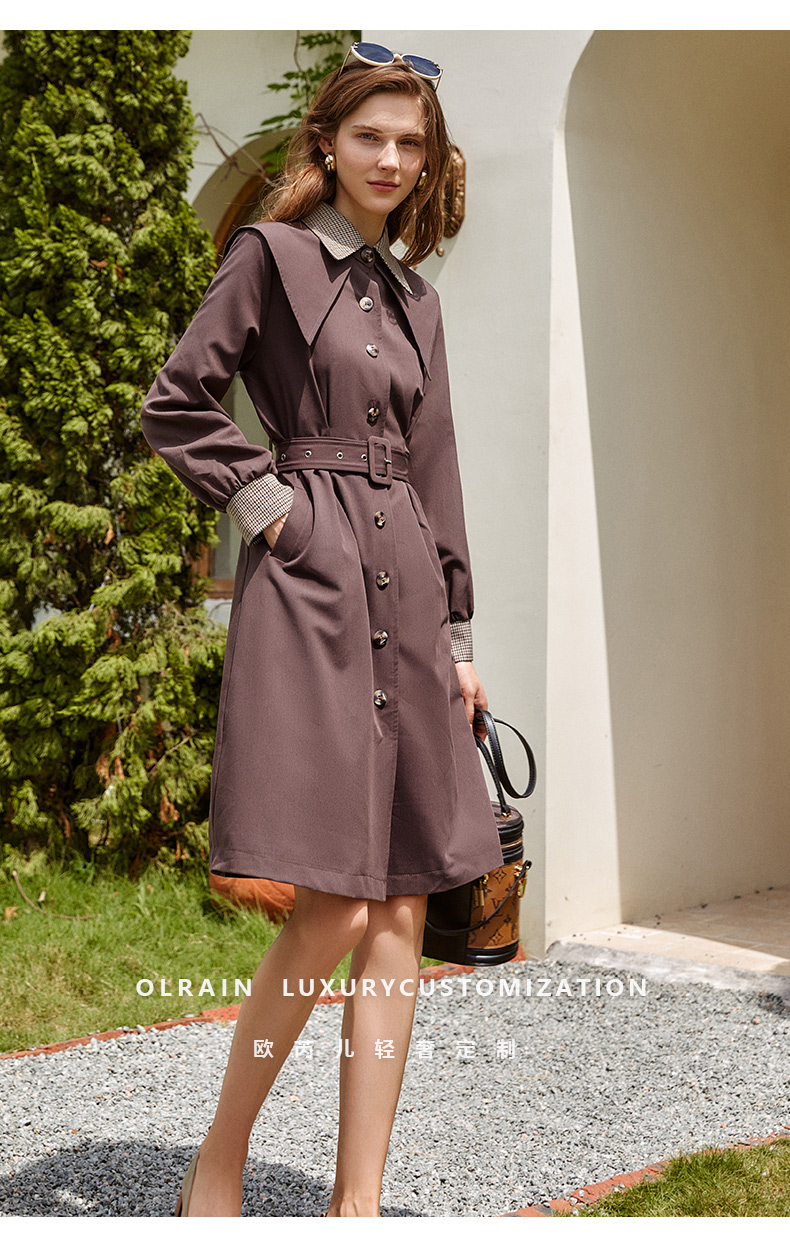 欧芮儿中长风衣外套女新款2021宽松显瘦气质复古休闲时尚大衣