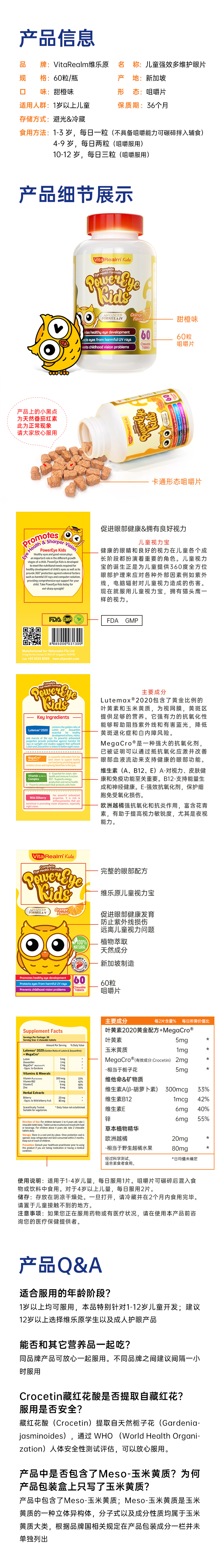 新加坡VitaRealm维乐原儿童叶黄素蓝莓咀嚼片60粒sy