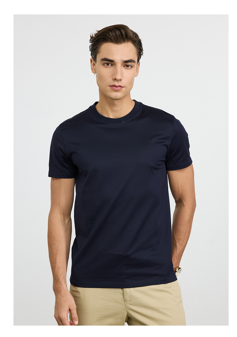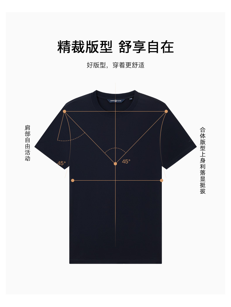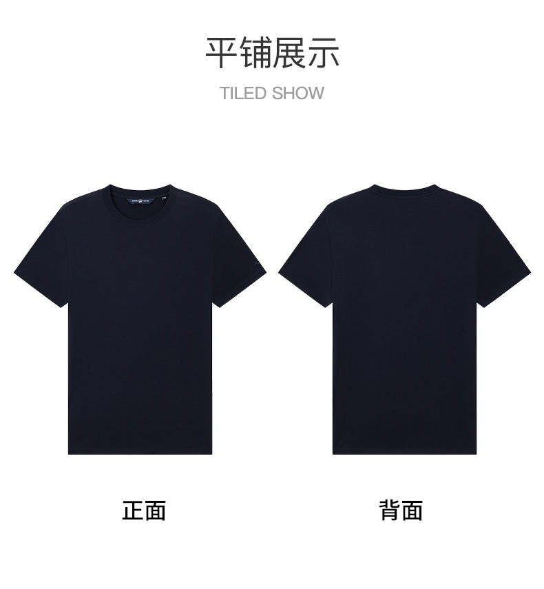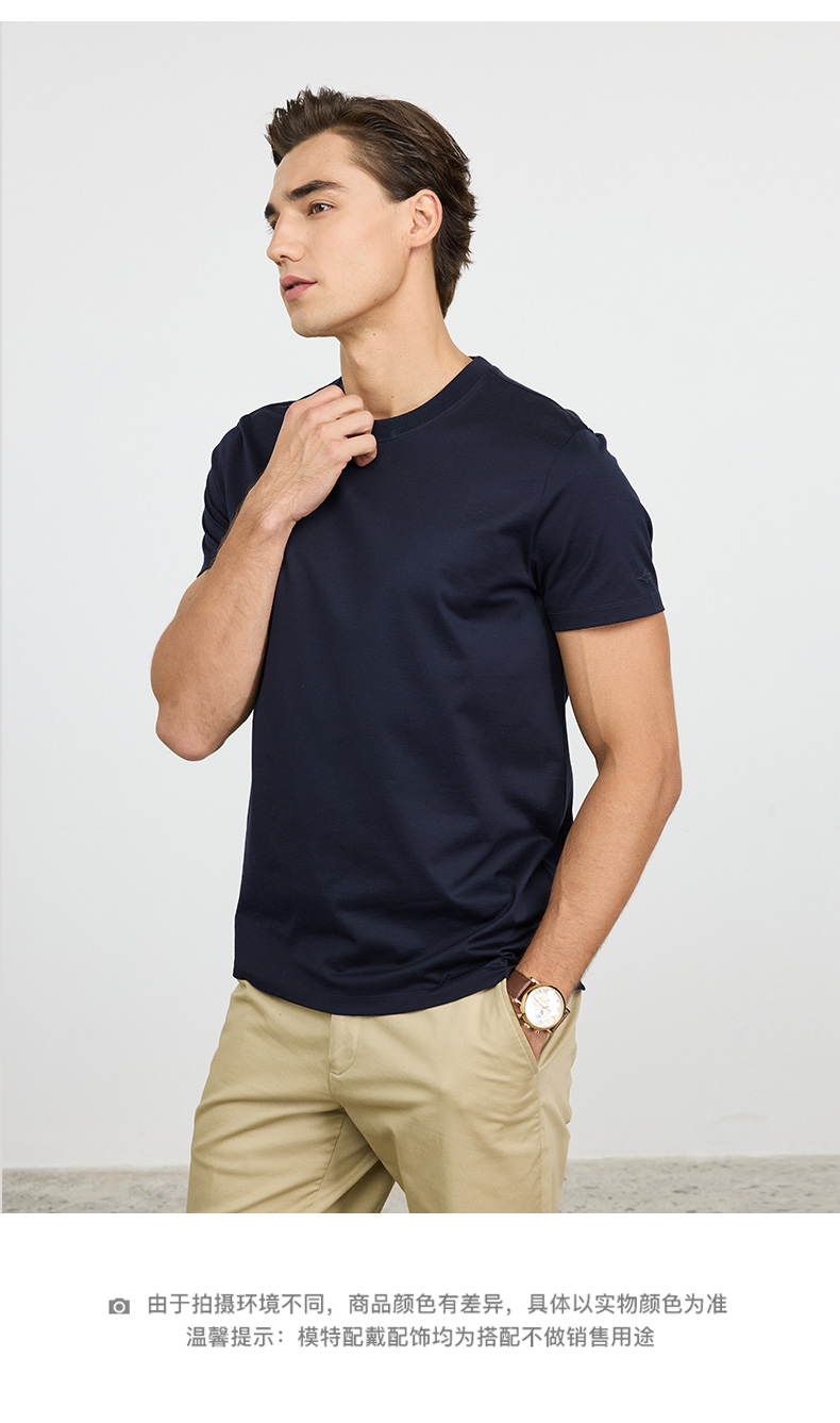 【纯棉】德鲨男装蓝色短袖圆领T恤2026夏新款全棉休闲上衣打底衫