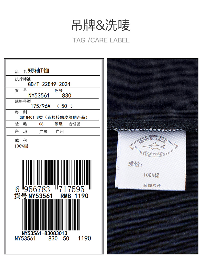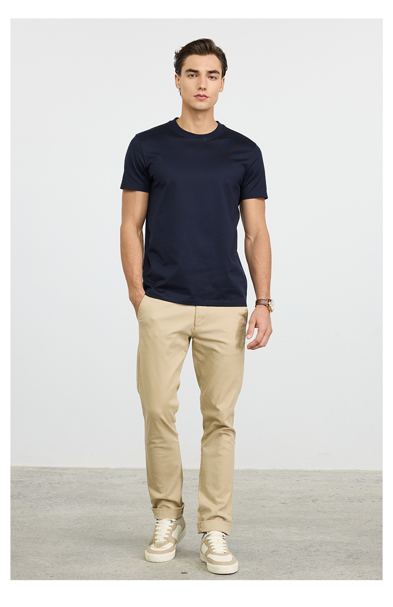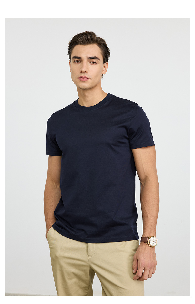 【纯棉】德鲨男装蓝色短袖圆领T恤2026夏新款全棉休闲上衣打底衫
