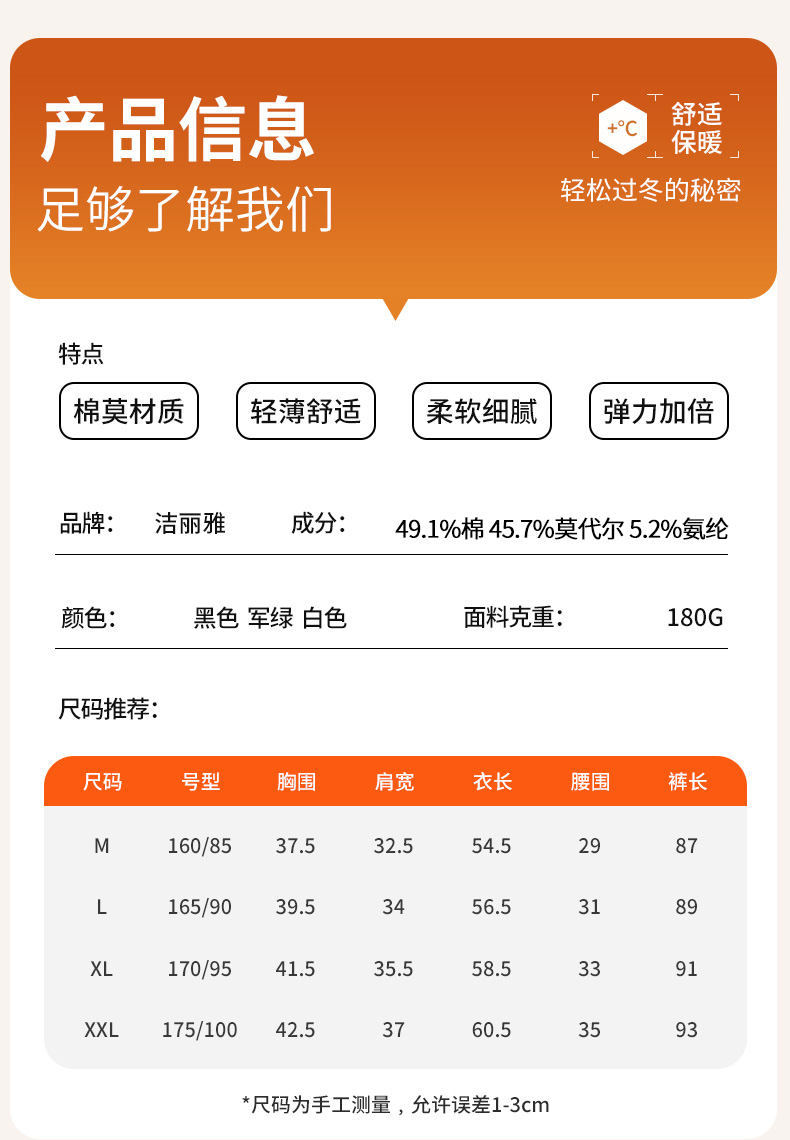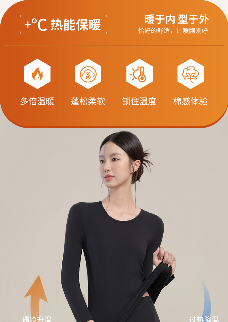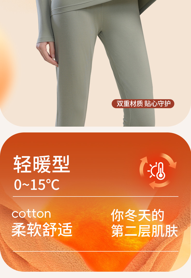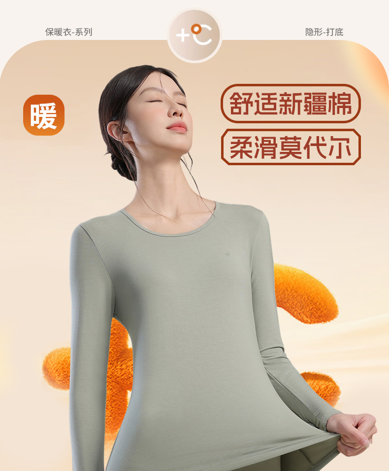 【秋冬新品】洁丽雅女士保暖内衣轻暖混纺亲肤舒适修身保暖套装女