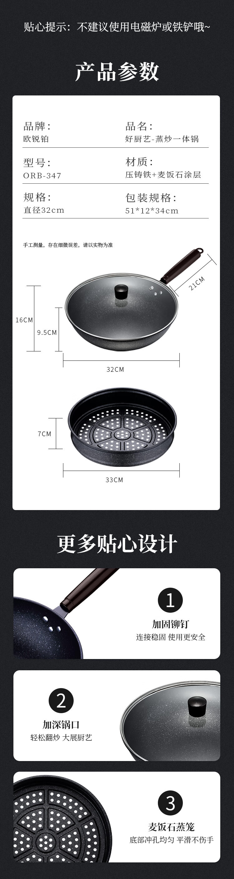 【分仓直发包邮】欧锐铂好厨艺蒸炒一体锅ORB-347