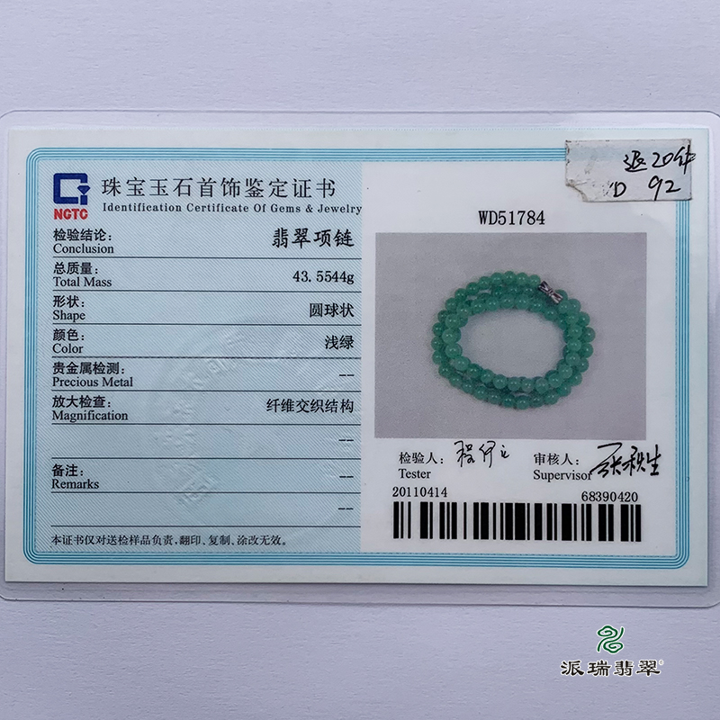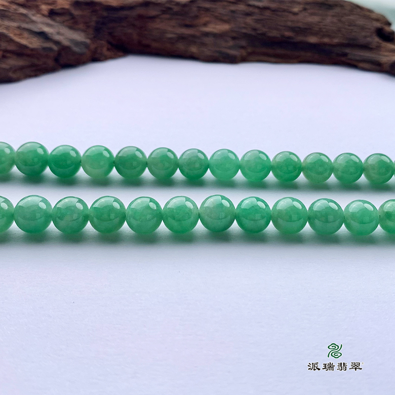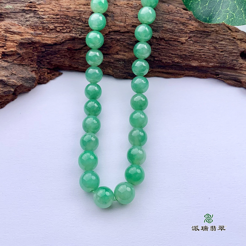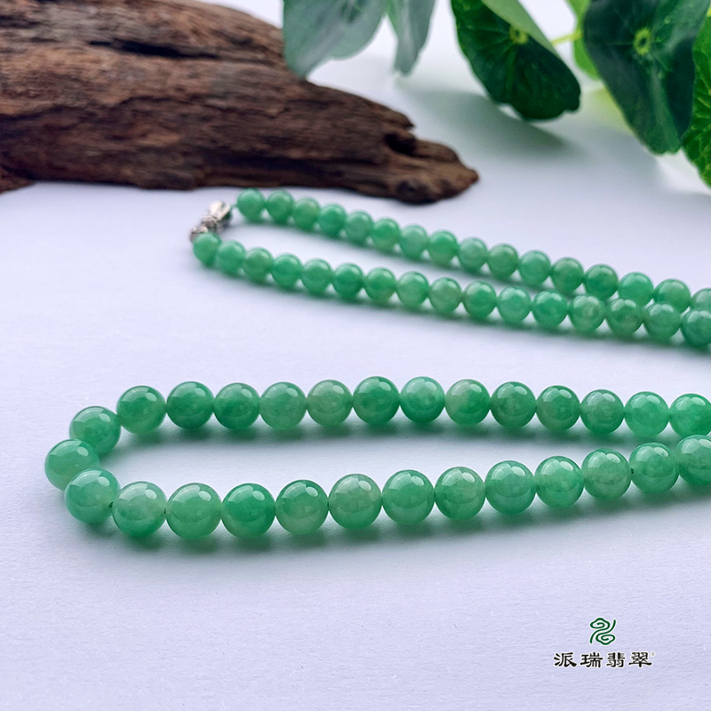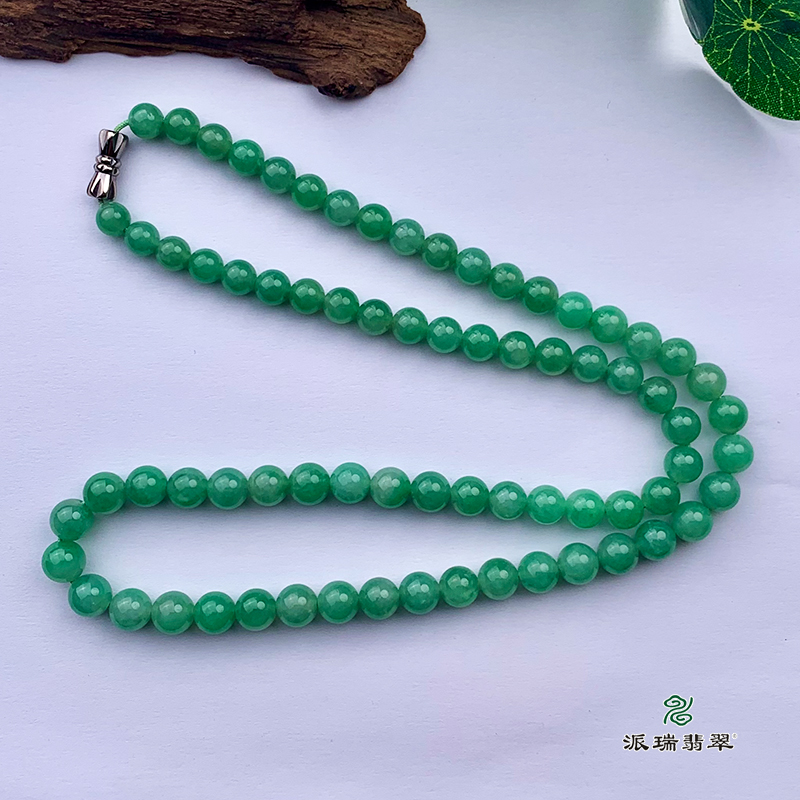 派瑞翡翠 翡翠珠链 糯种 满绿