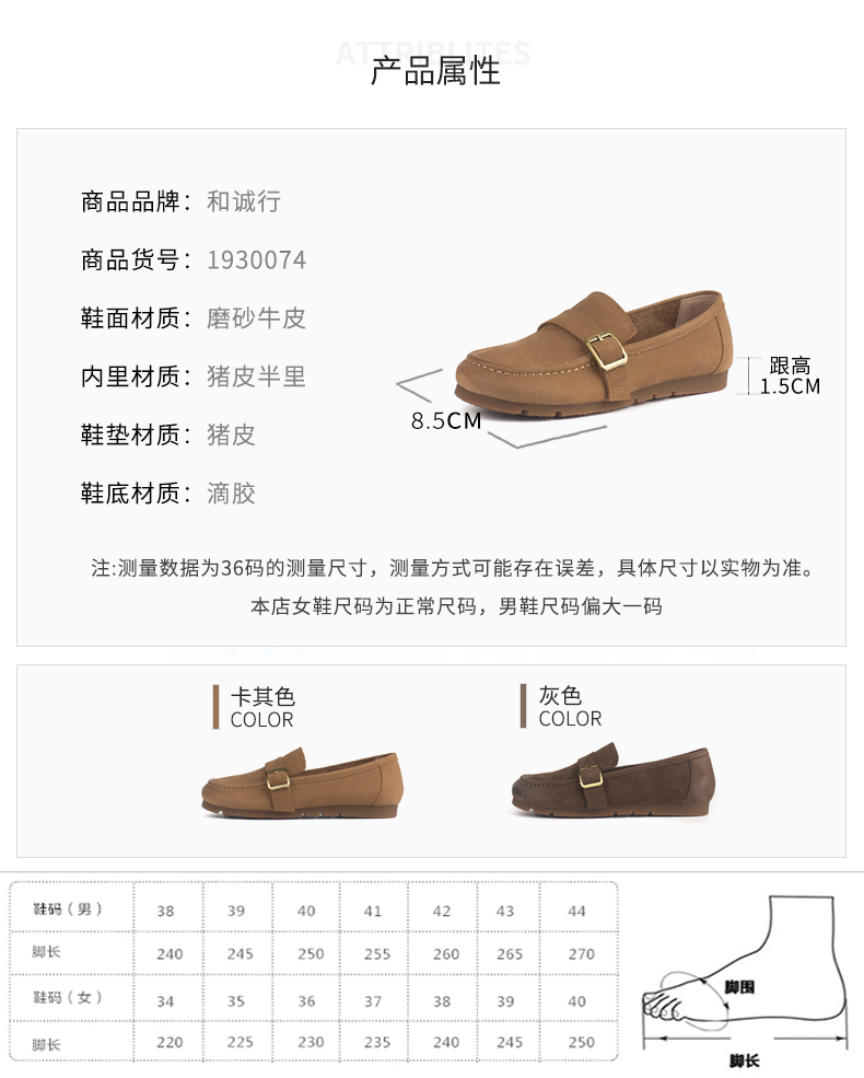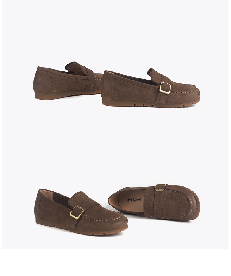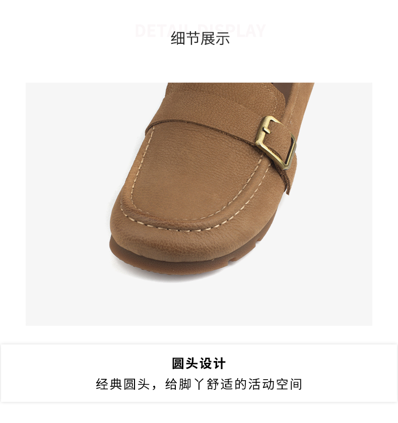 和诚行 2024秋冬新款复古百搭舒适豆豆鞋女鞋一脚蹬乐福鞋1930074