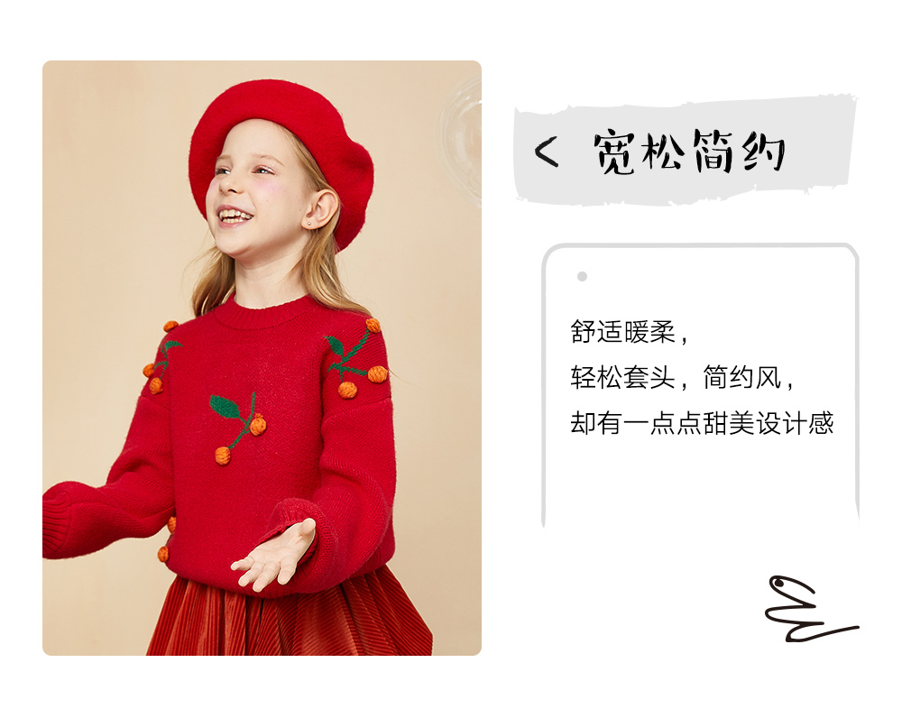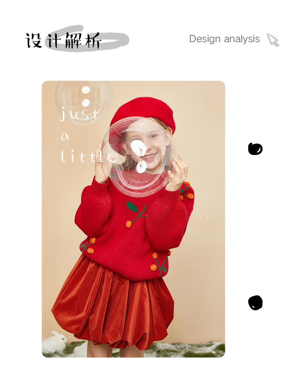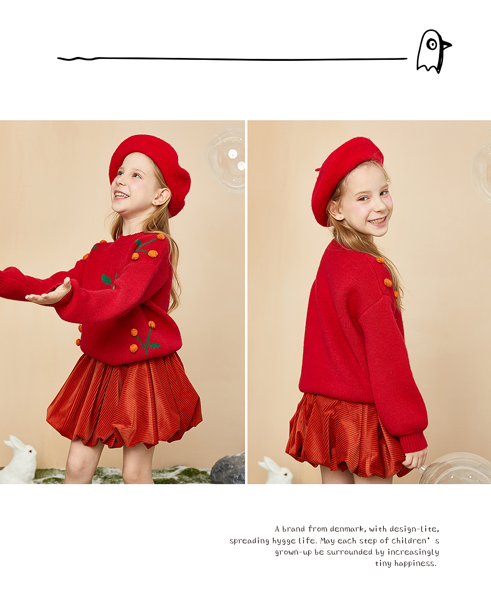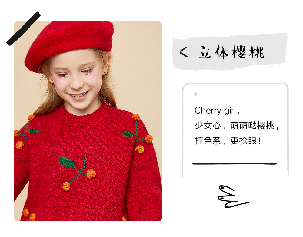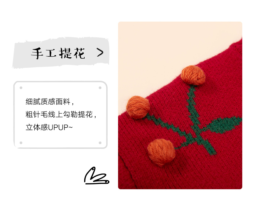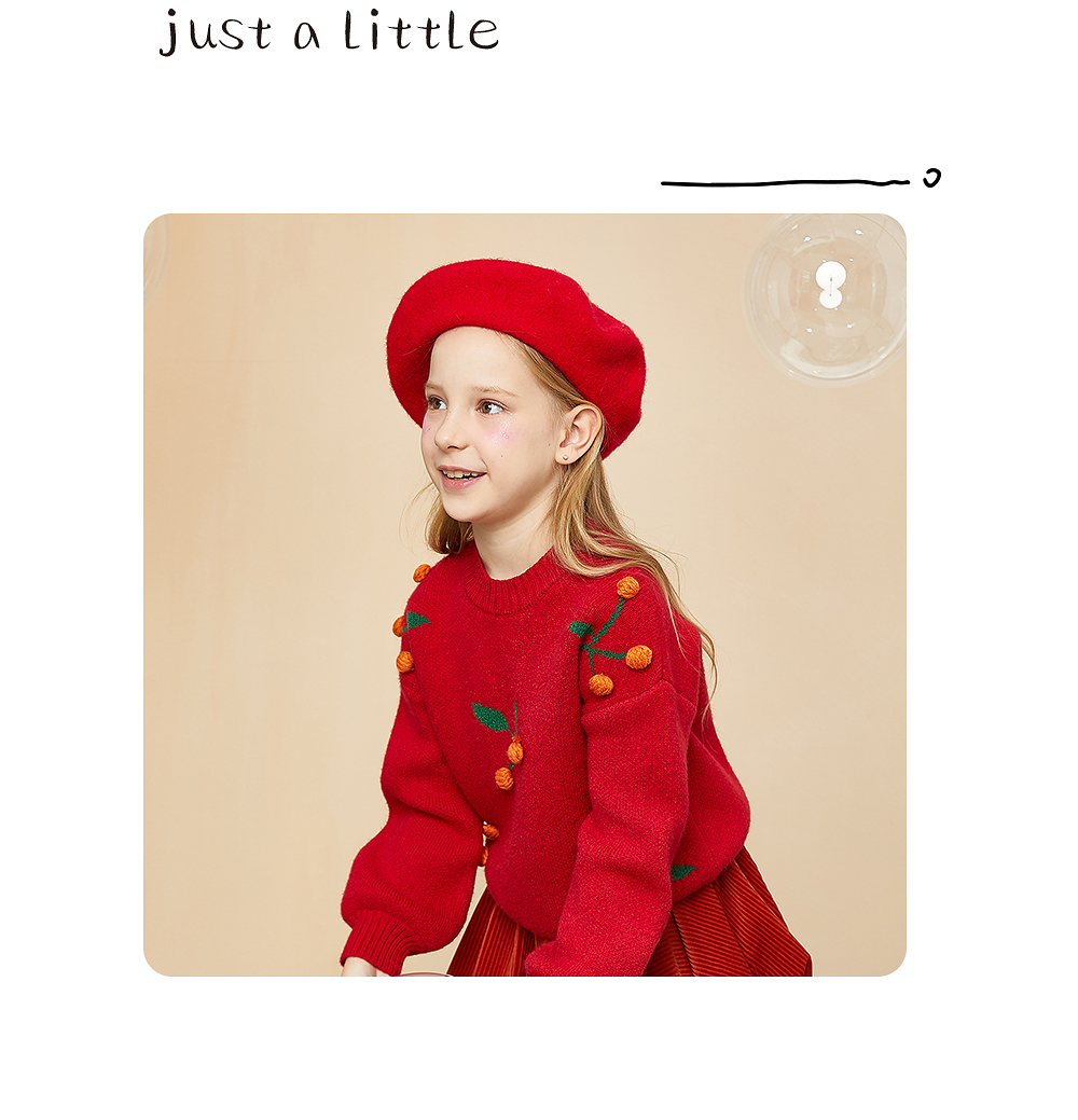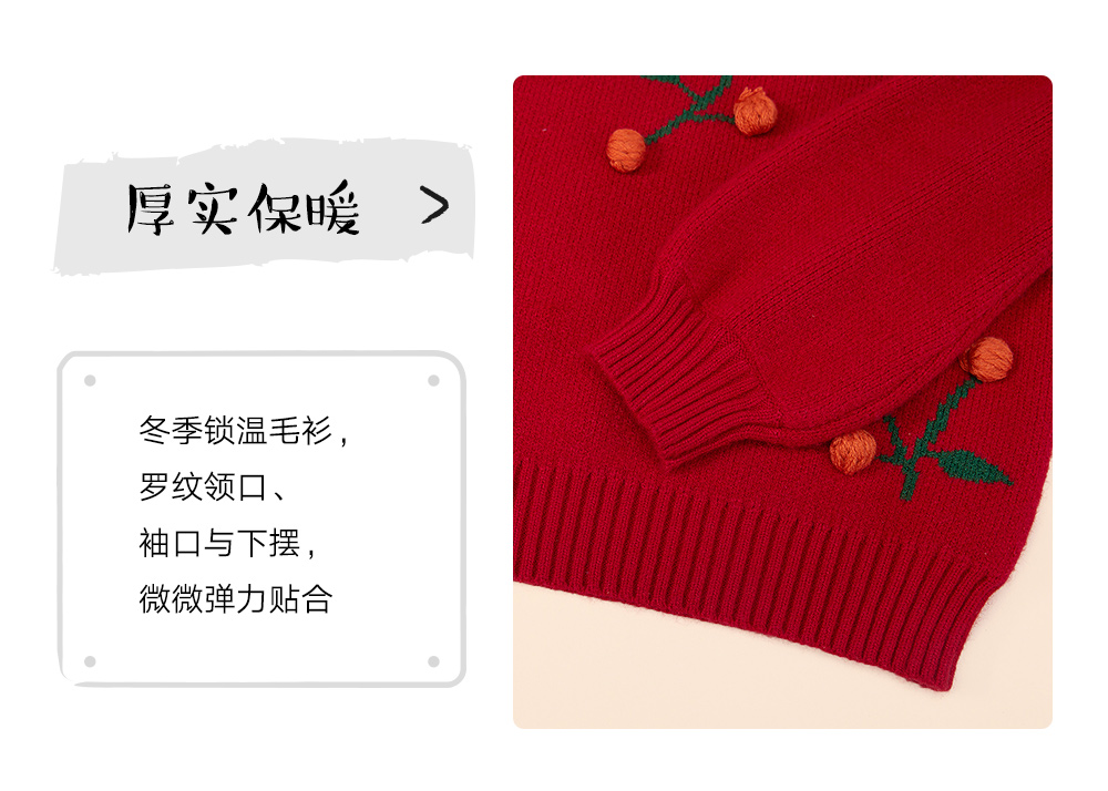 littletime童装樱桃毛衣冬新款立体装饰可爱红色年款上衣