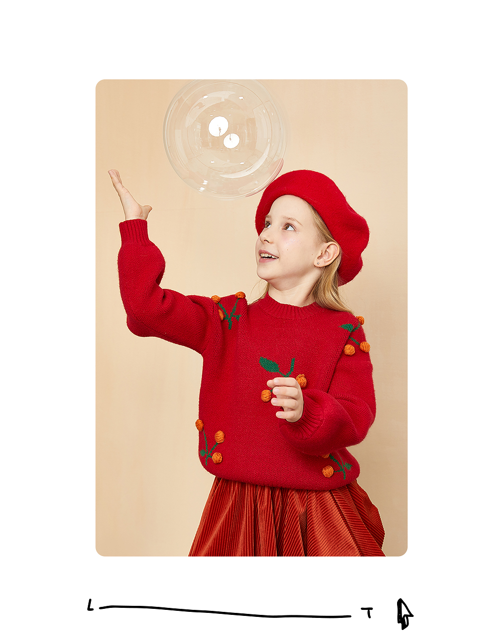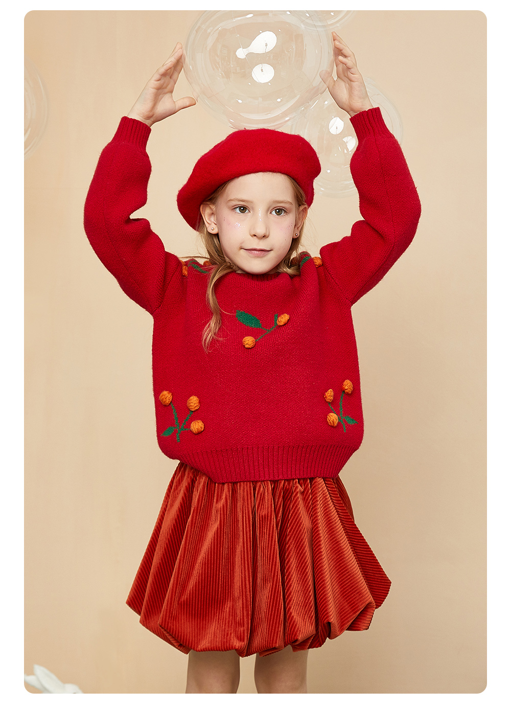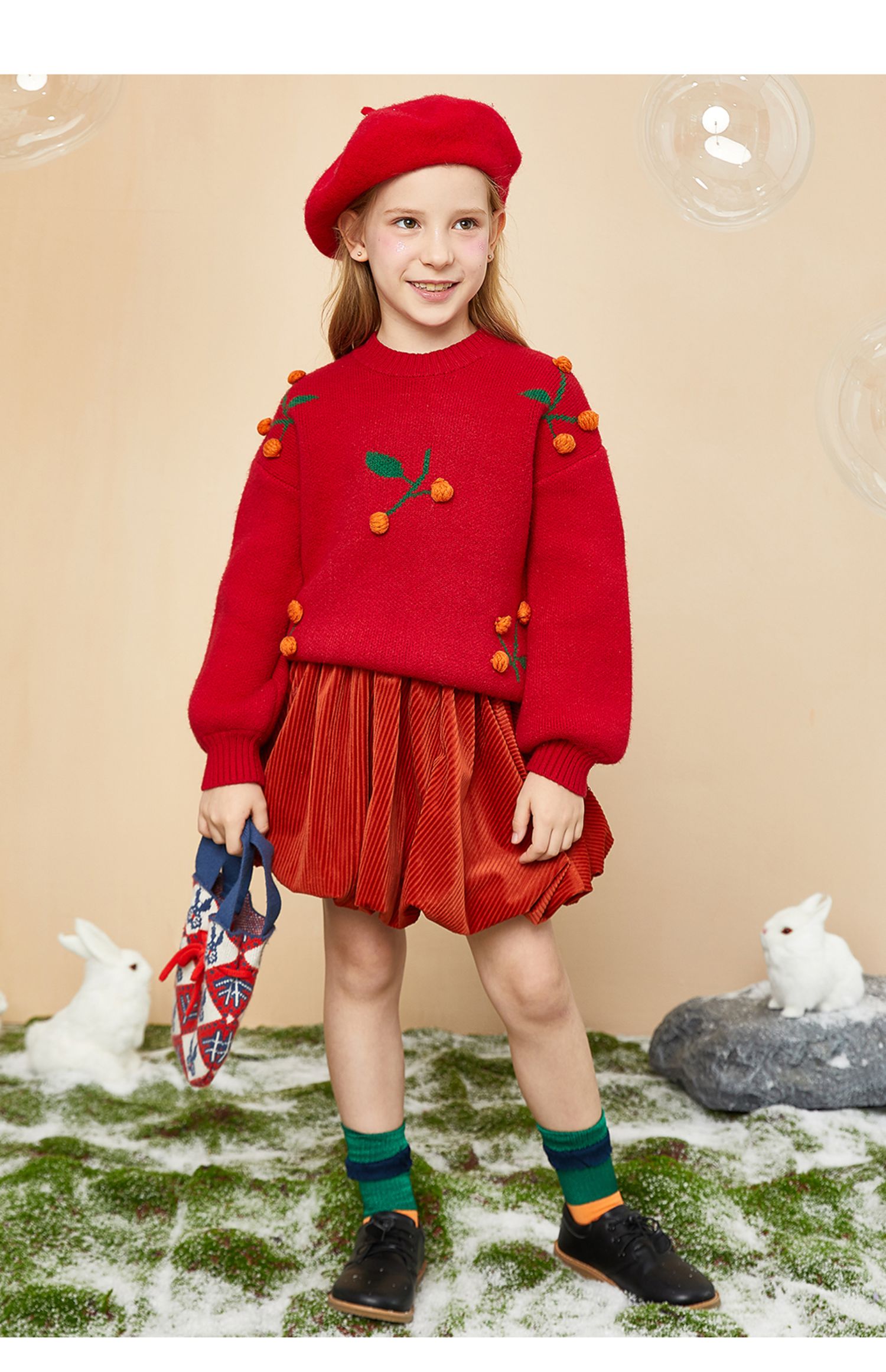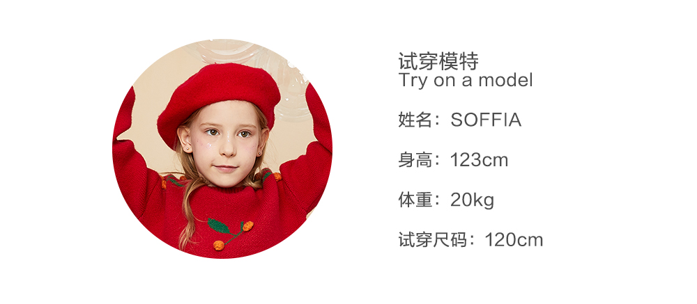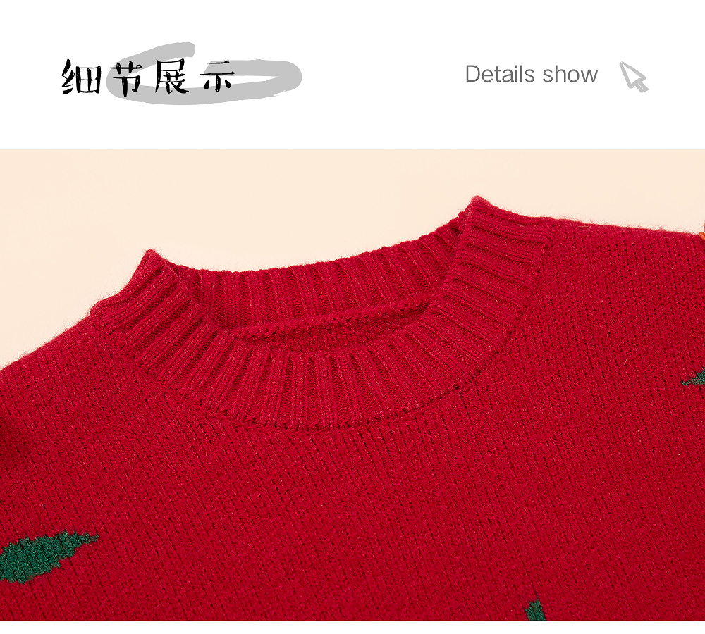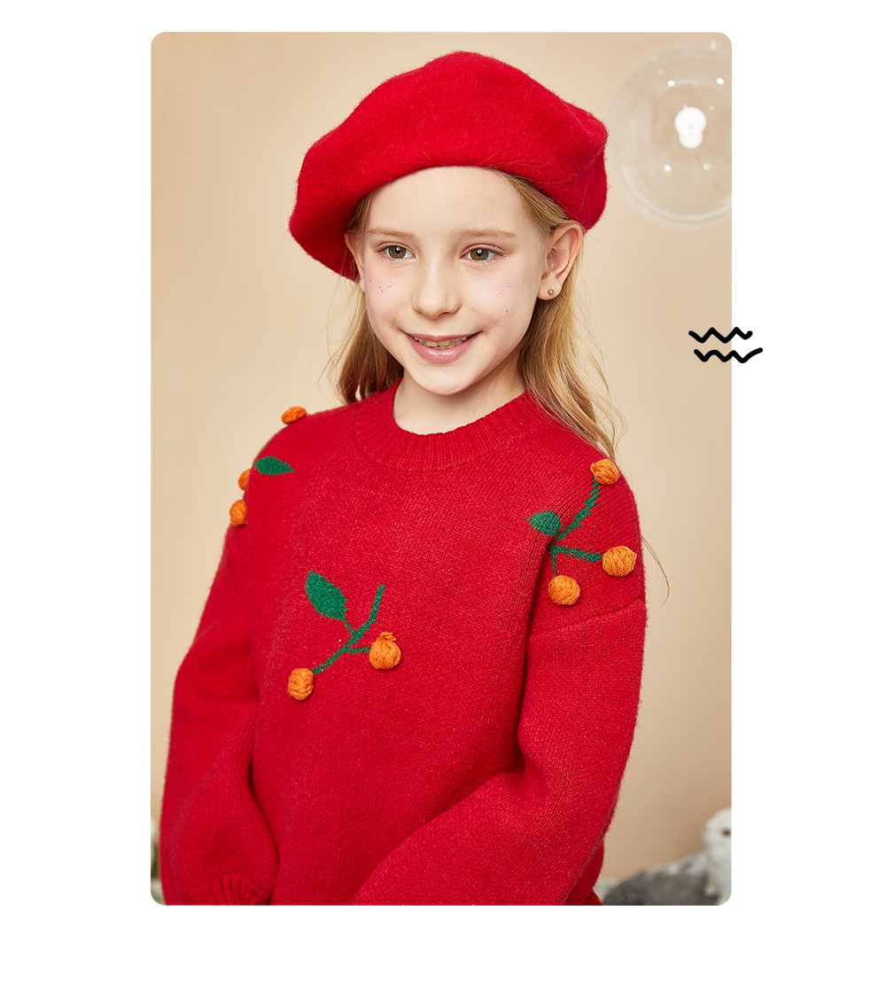 littletime童装樱桃毛衣冬新款立体装饰可爱红色年款上衣
