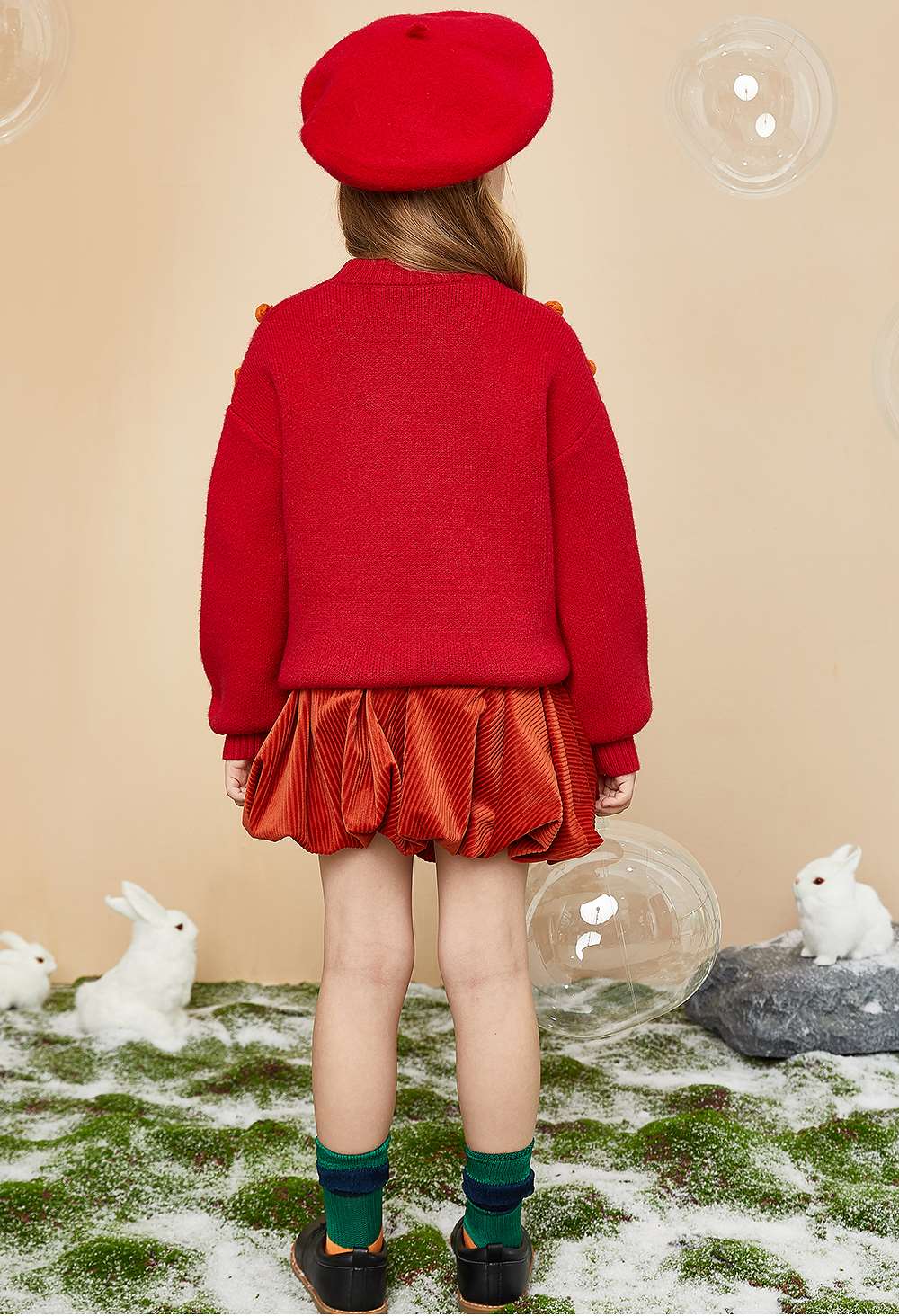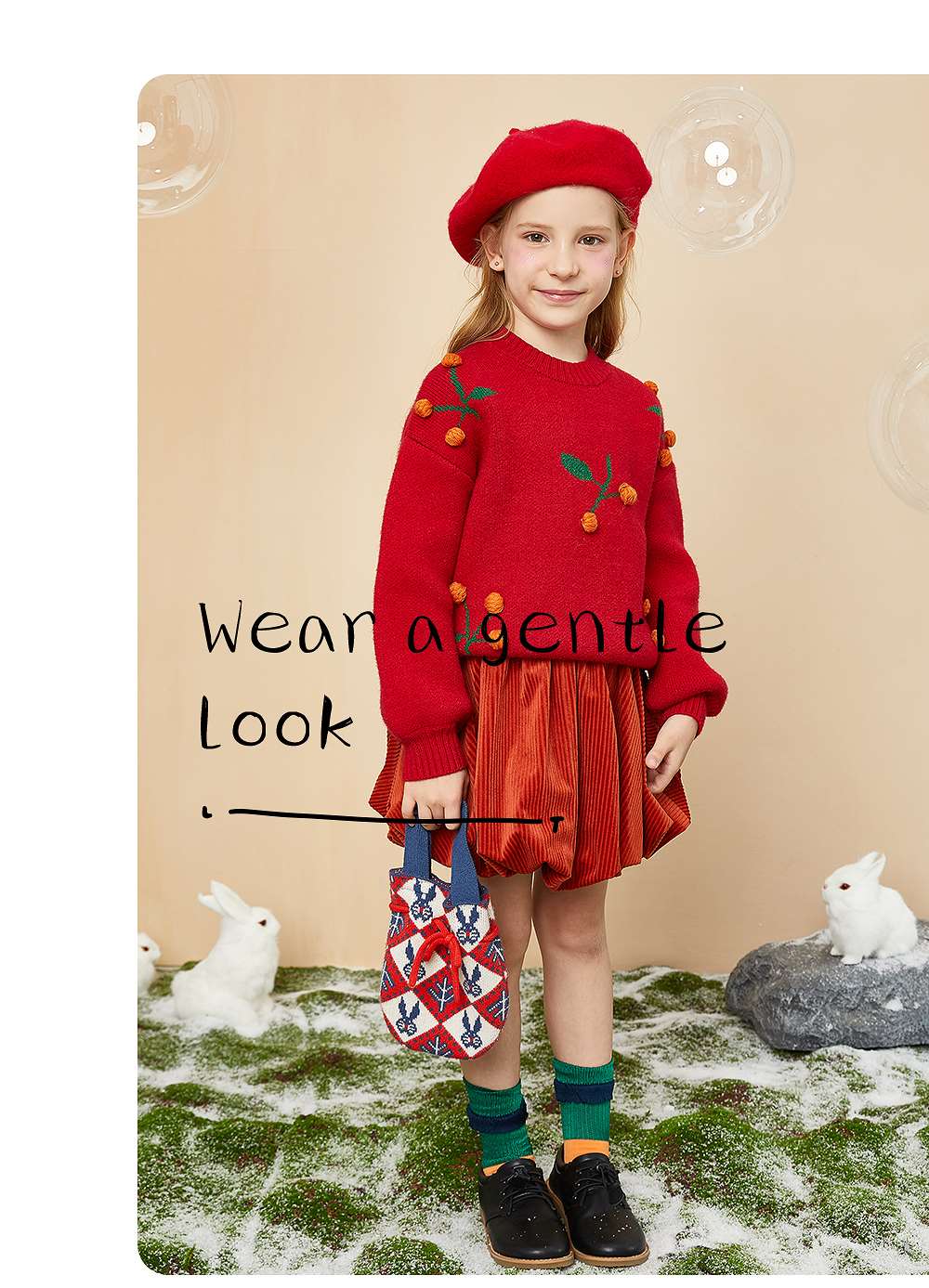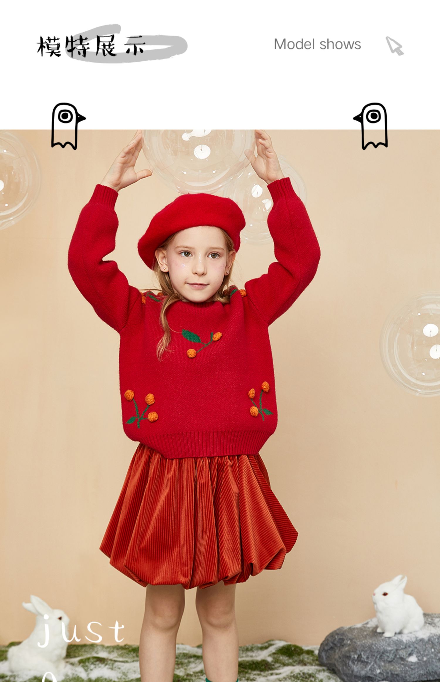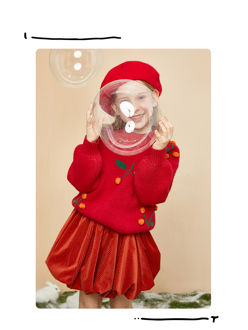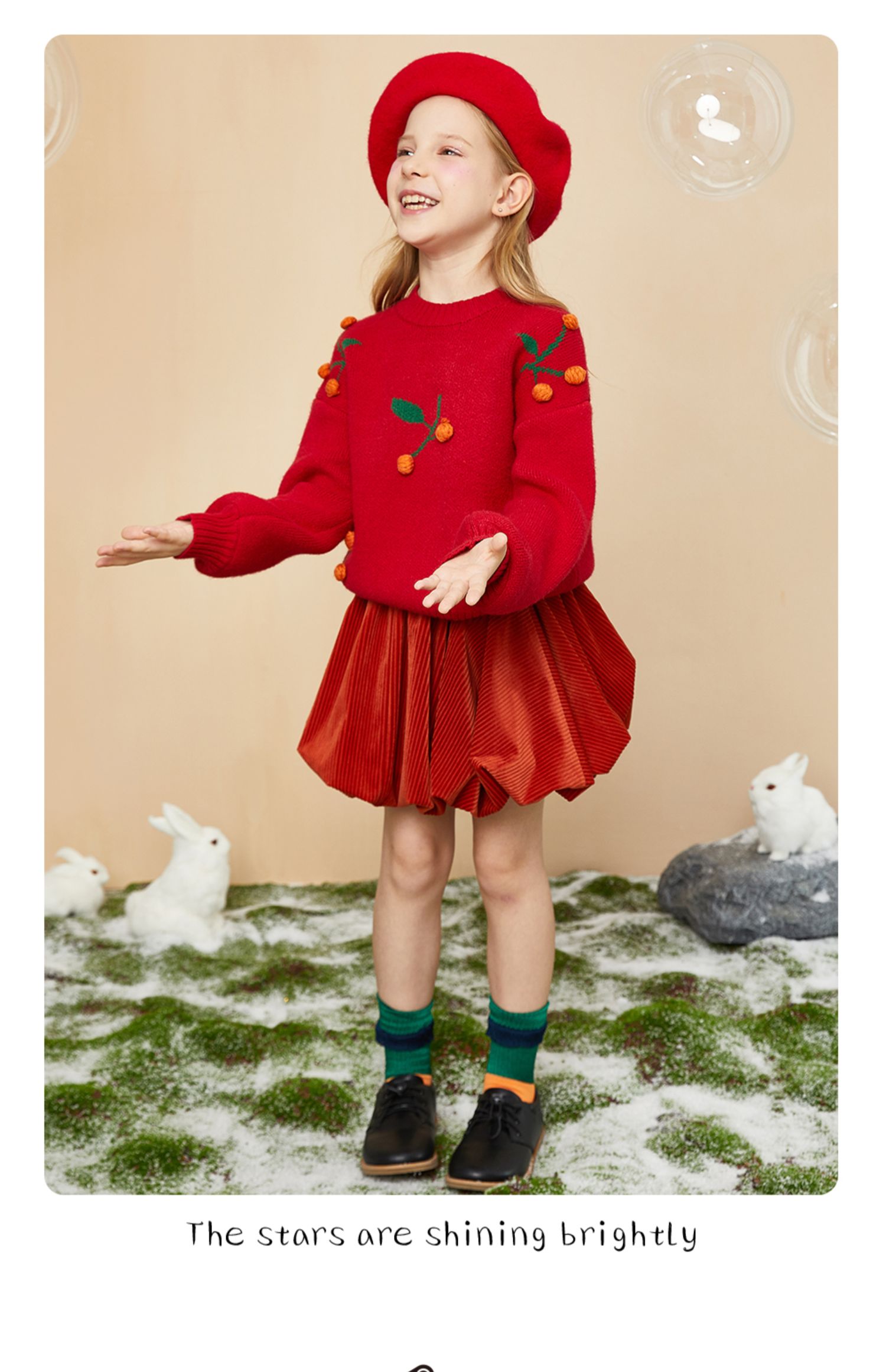 littletime童装樱桃毛衣冬新款立体装饰可爱红色年款上衣