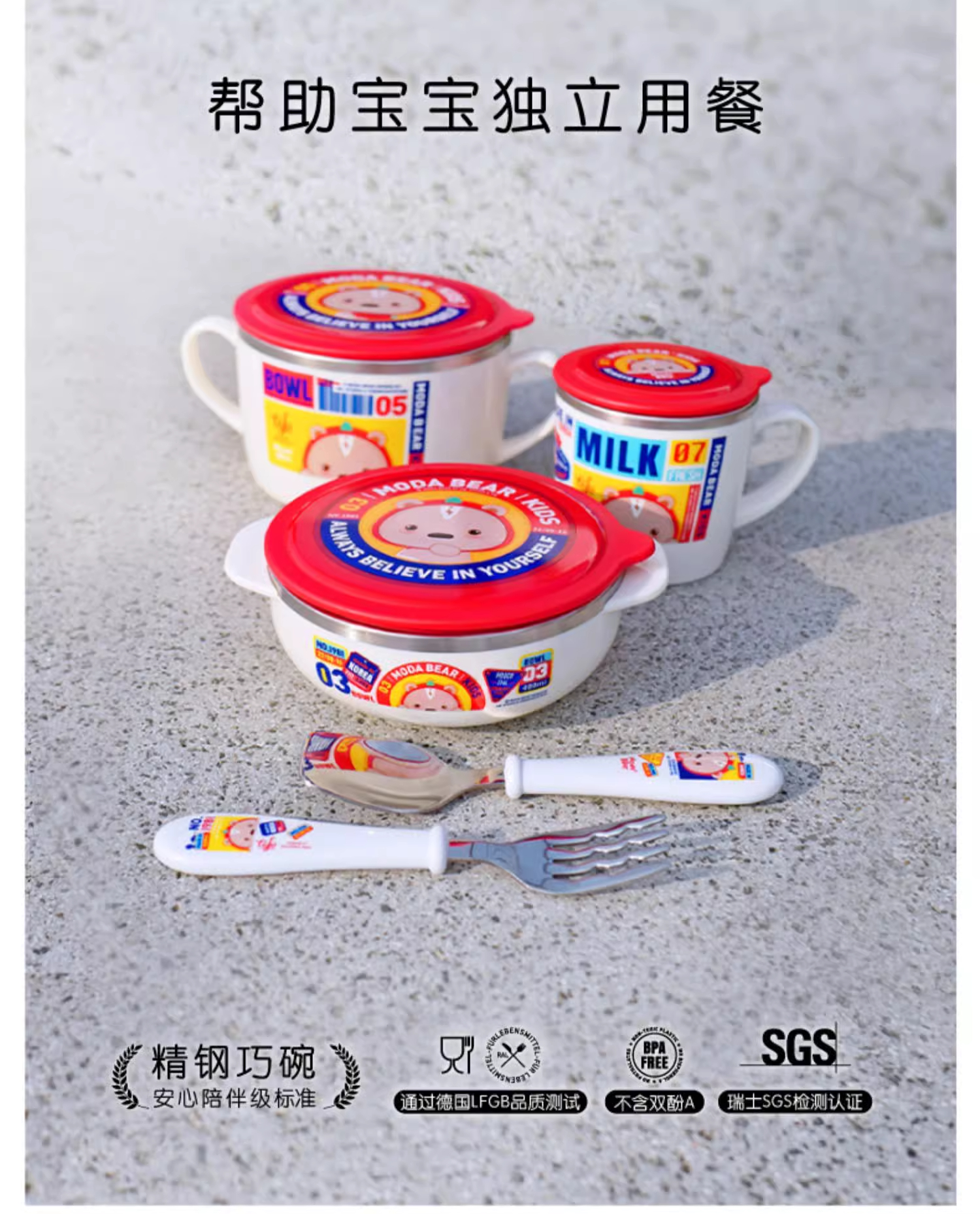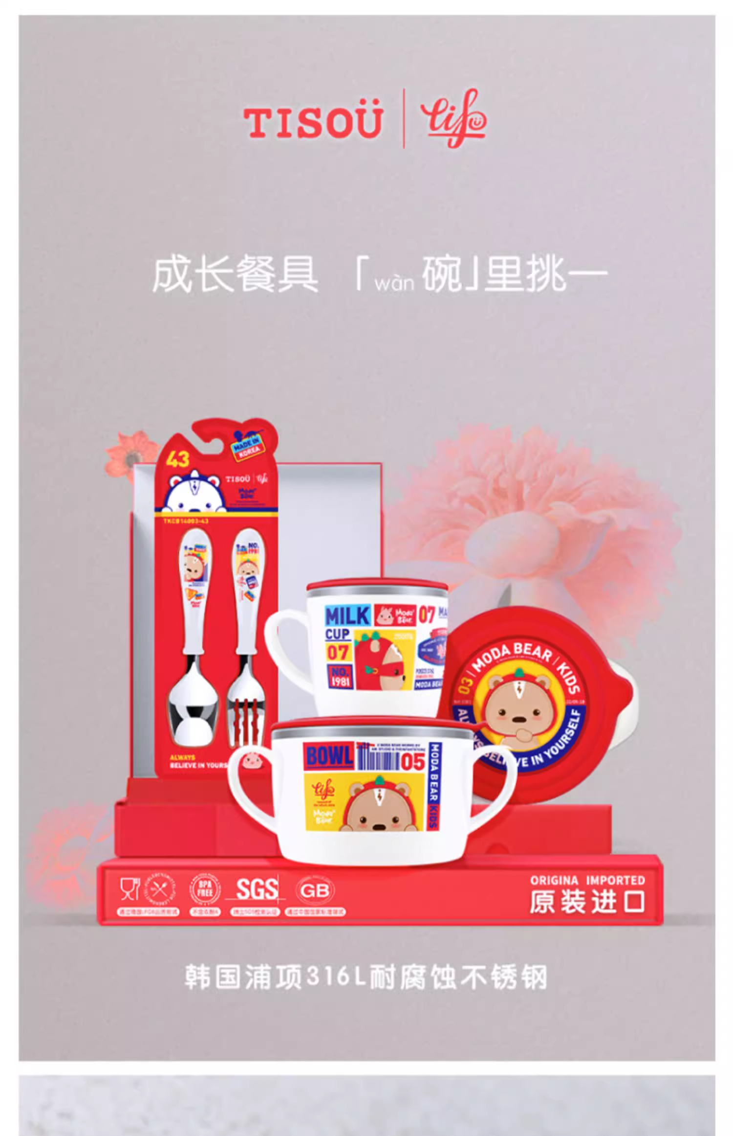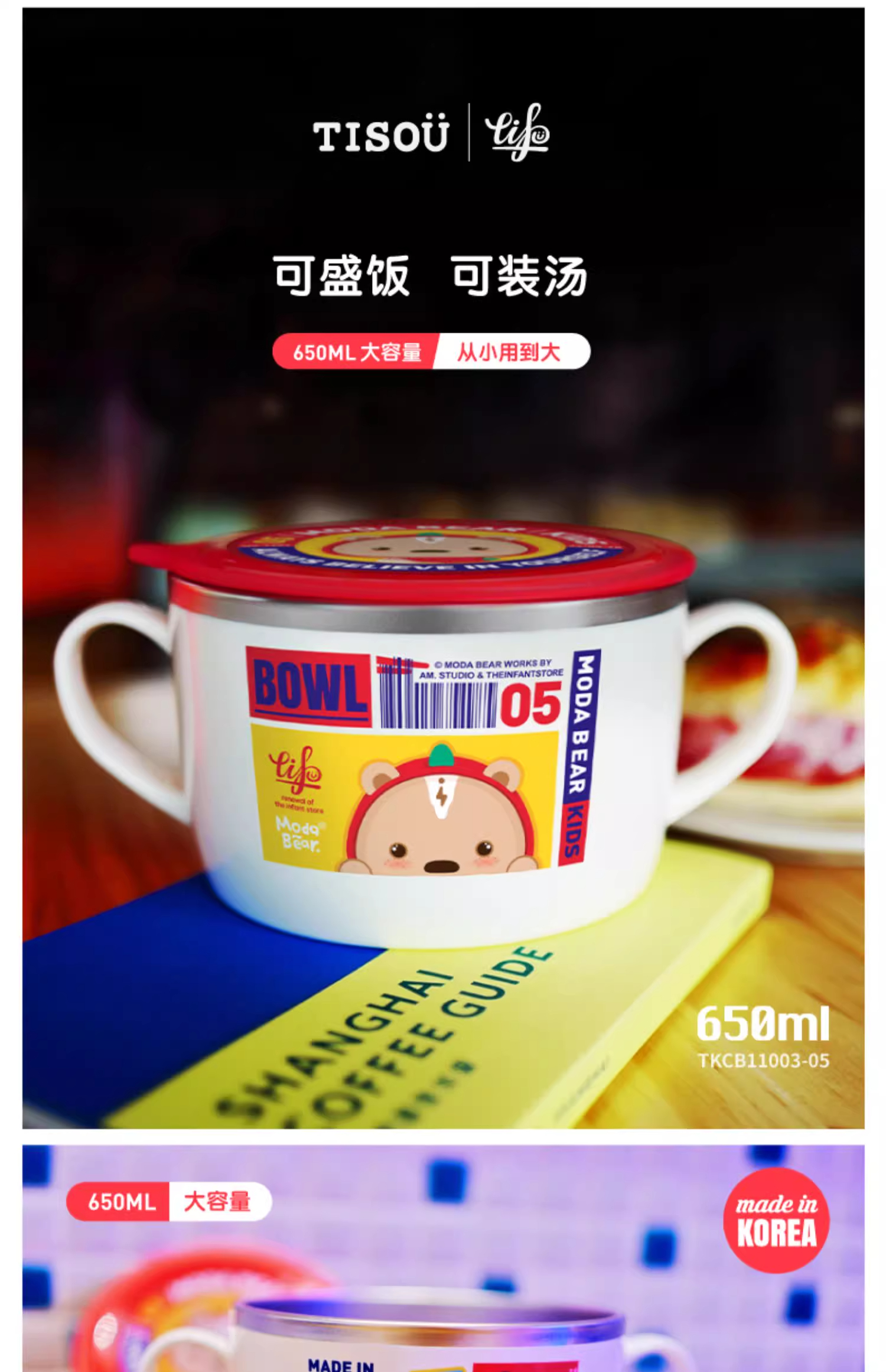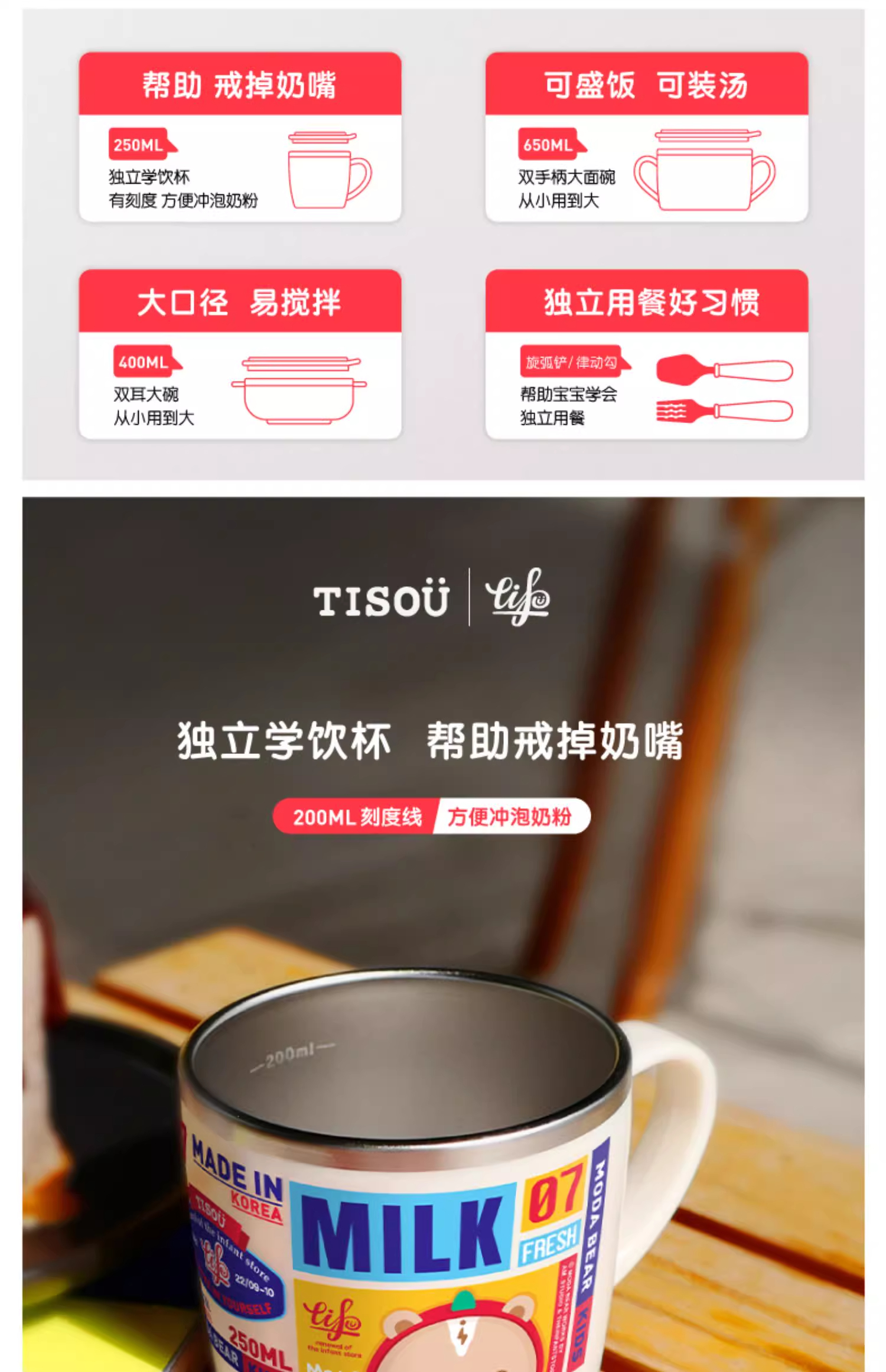 韩国TISOU 宝宝儿童餐具水杯幼儿园自主吃饭训练叉勺 餐具美味三件套 面碗 保温杯 3岁+