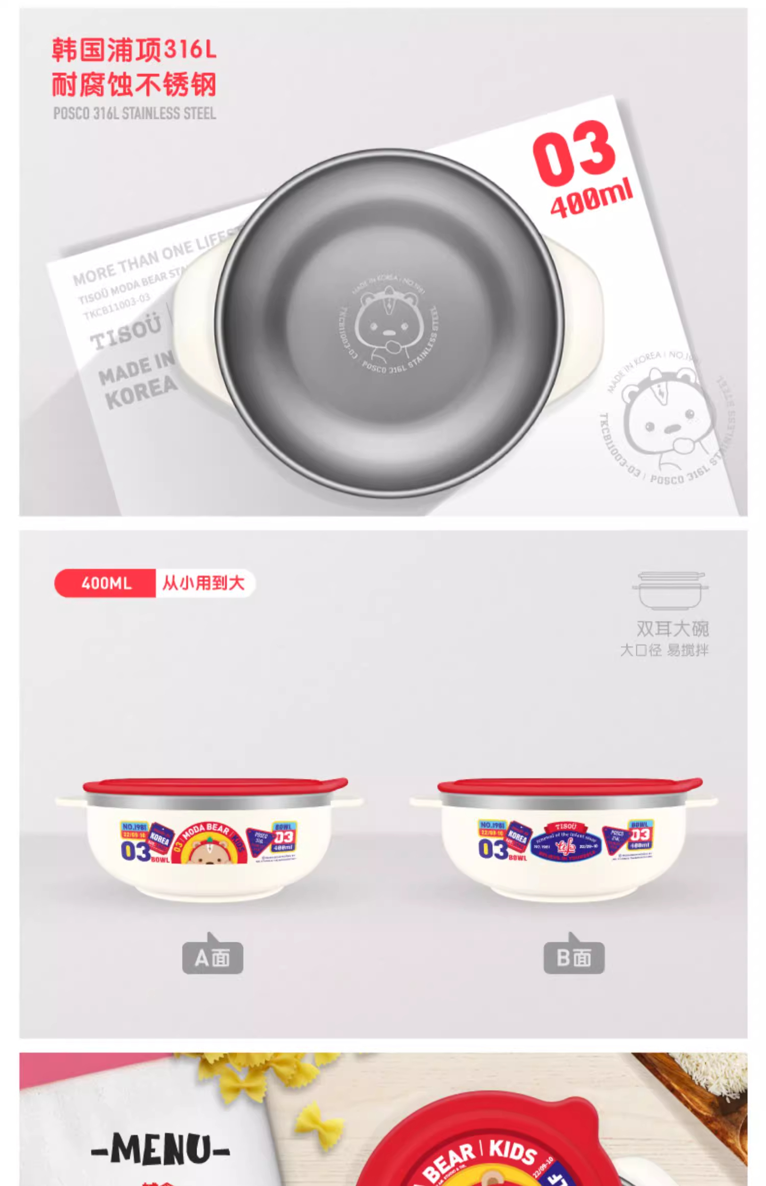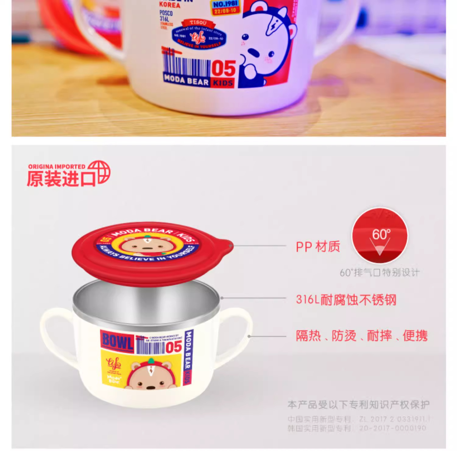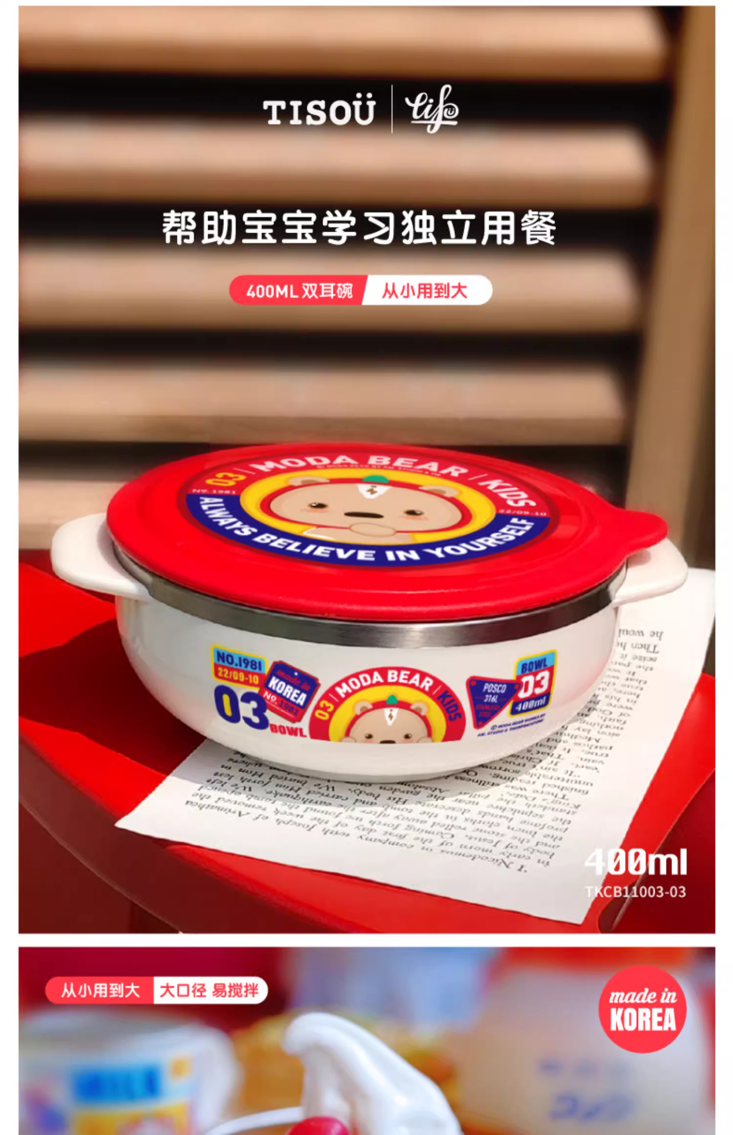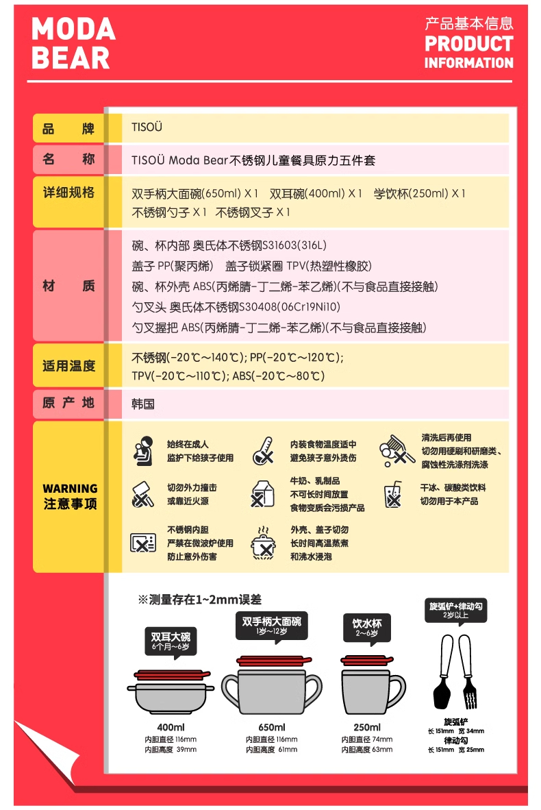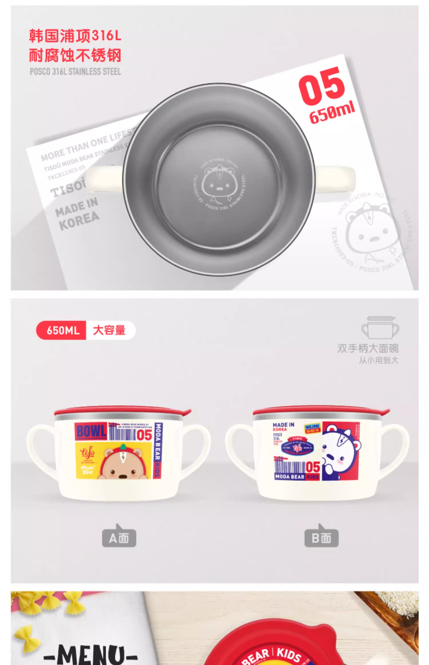 韩国TISOU 宝宝儿童餐具水杯幼儿园自主吃饭训练叉勺 餐具美味三件套 面碗 保温杯 3岁+